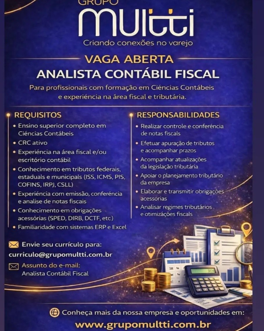 1 Vaga de emprego para Analista Contábil em Grupo Multti neste sábado (18/04)
