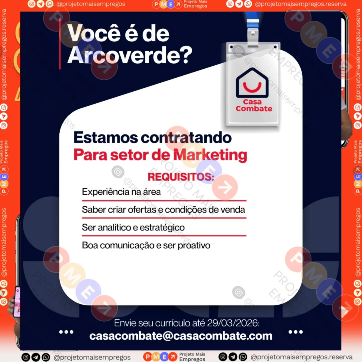 As informações sobre a vaga de emprego, como salário, remuneração, benefícios, requisitos, local de trabalho, forma de candidatura (e-mail ou whatsapp para enviar seu currículo) etc., estarão na imagem abaixo, caso estejam disponíveis.👇