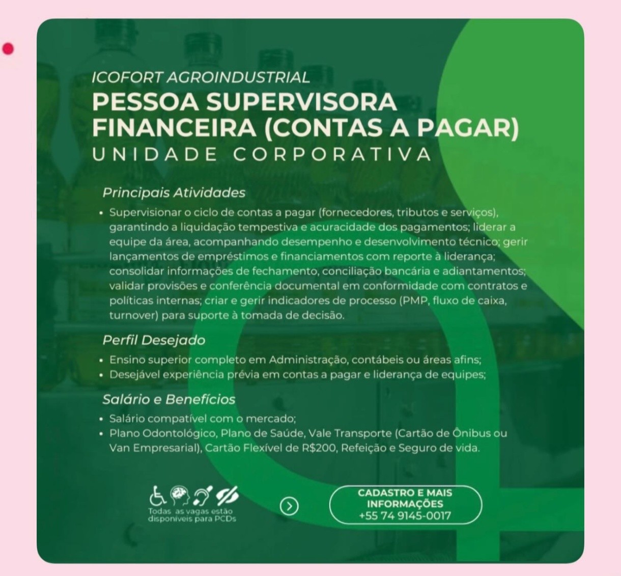 1 Vaga de emprego para Assistente Financeiro em Icofort Agroindustrial nesta quarta-feira (08/04)
