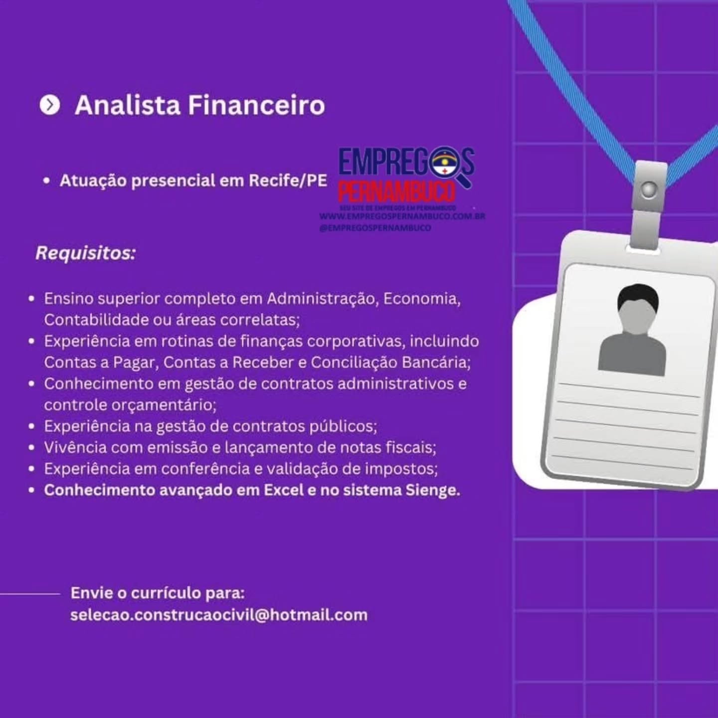 1 Vaga de emprego para Assistente Financeiro em Pernambuco nesta terça-feira (14/04)