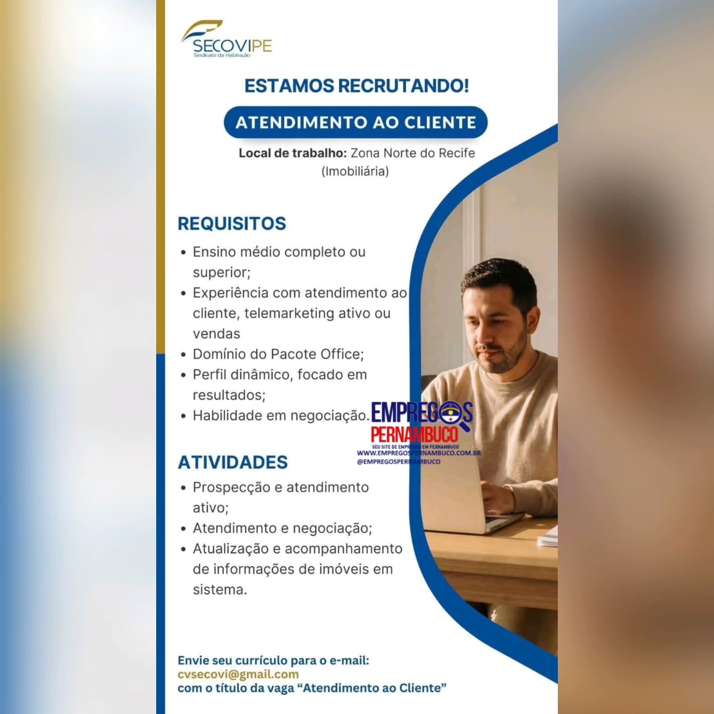 1 Vaga de emprego para Atendente em Secovipe (Sindicato Da Habitação) nesta terça-feira (31/03)