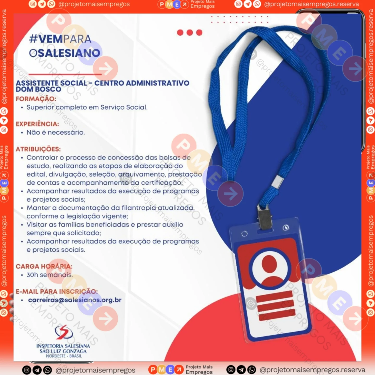 Perfil no Instagram: @projetomaisempregos.reserva