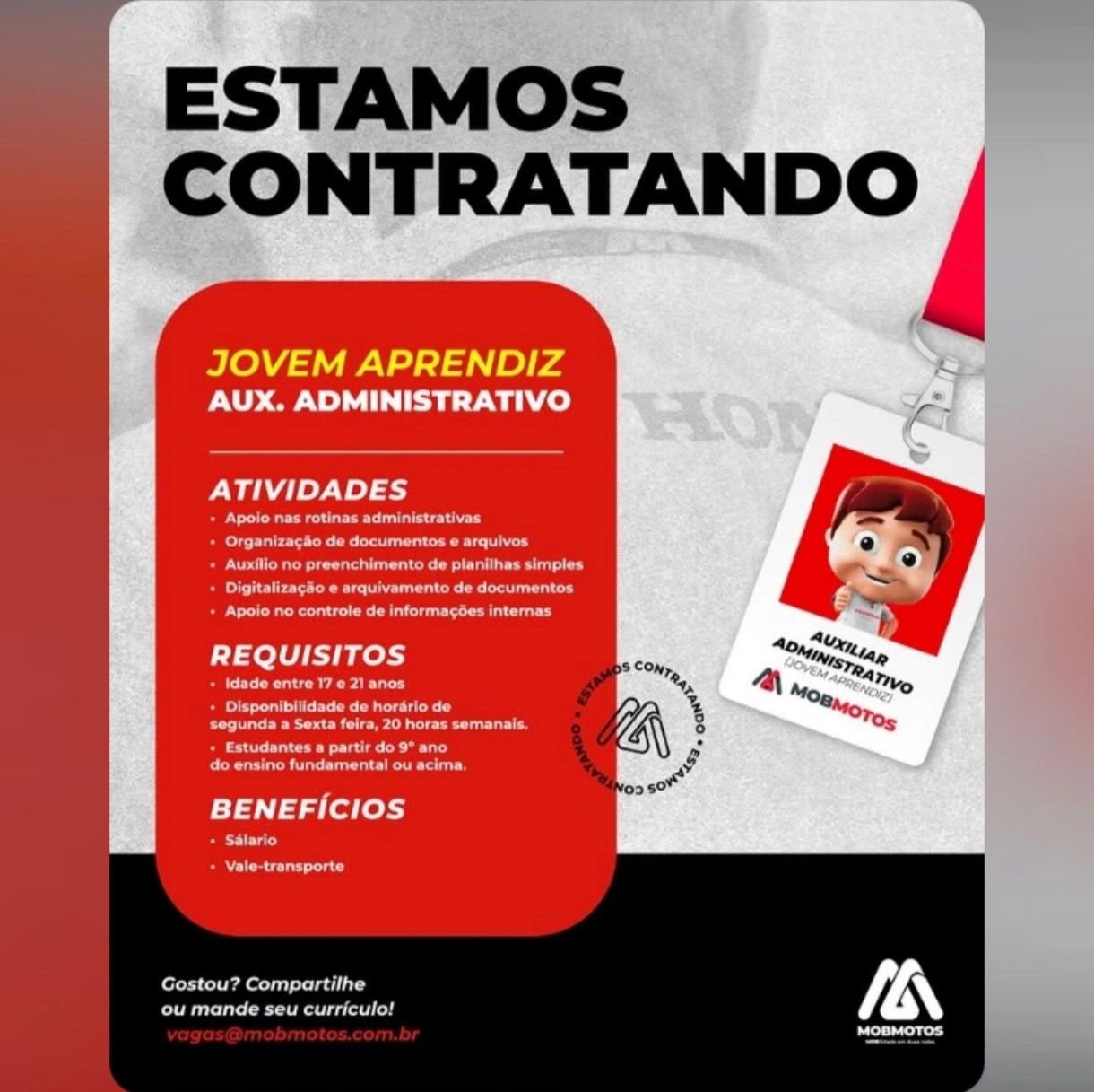 1 Vaga de emprego para Auxiliar / Assistente Administrativo em Mobmotos nesta sexta-feira (17/04)