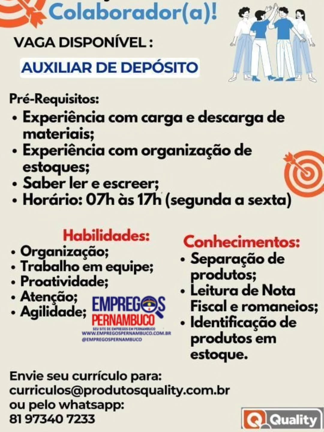 Quantidade de vagas: AUXILIAR DE DEPÓSITO / ALMOXARIFADO: 1