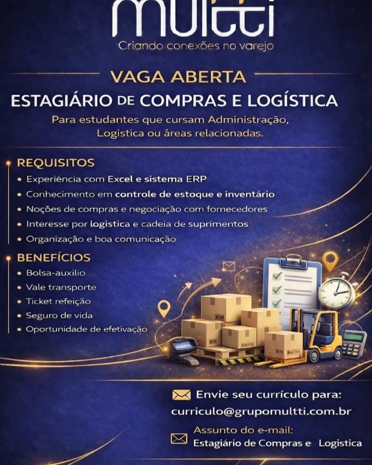 1 Vaga de emprego para Auxiliar de Logística em Multti nesta segunda-feira (13/04)