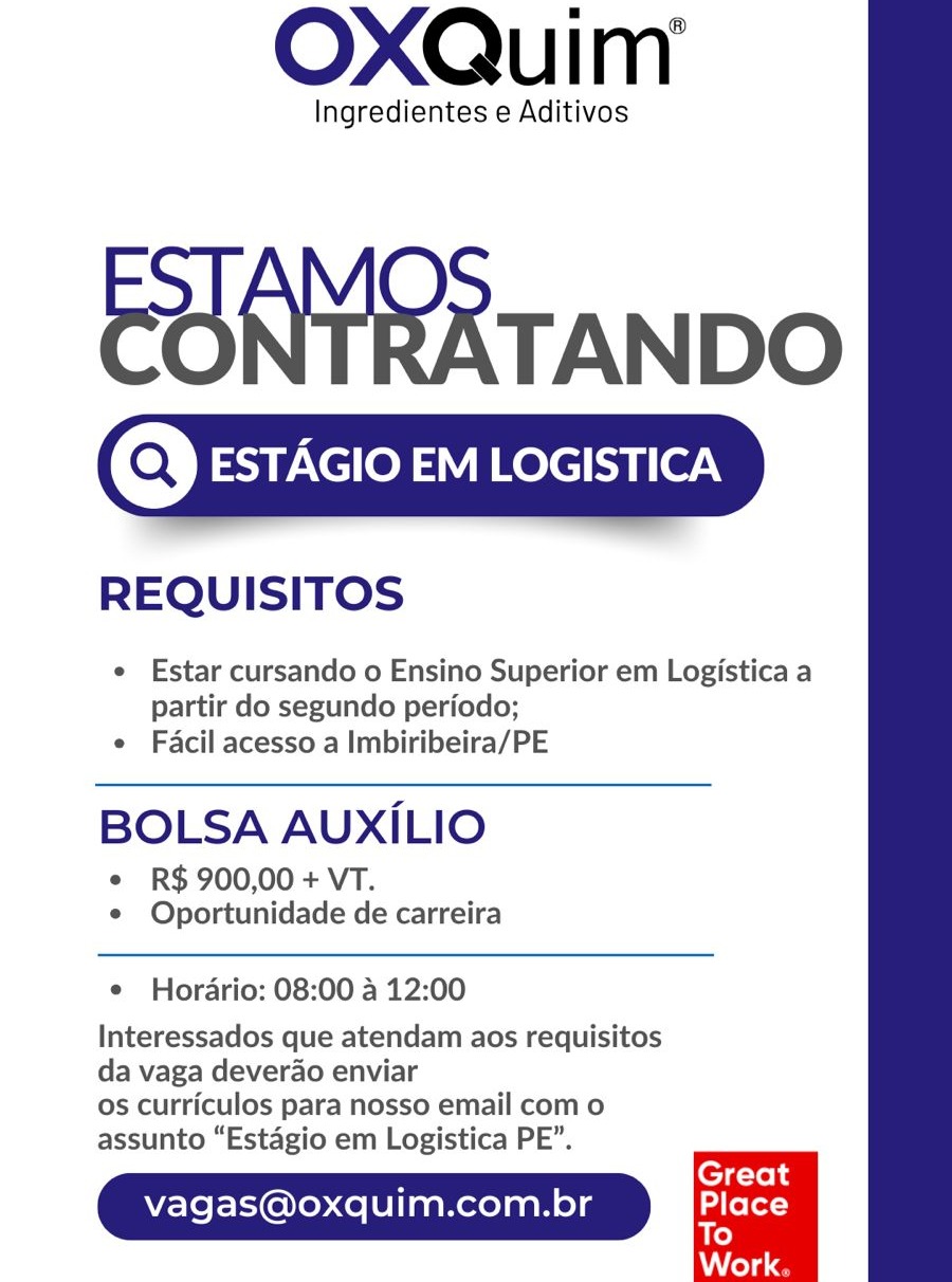 1 Vaga de emprego para Auxiliar De Logística em Oxquim Ingredientes E Aditivos nesta sexta-feira (27/03)