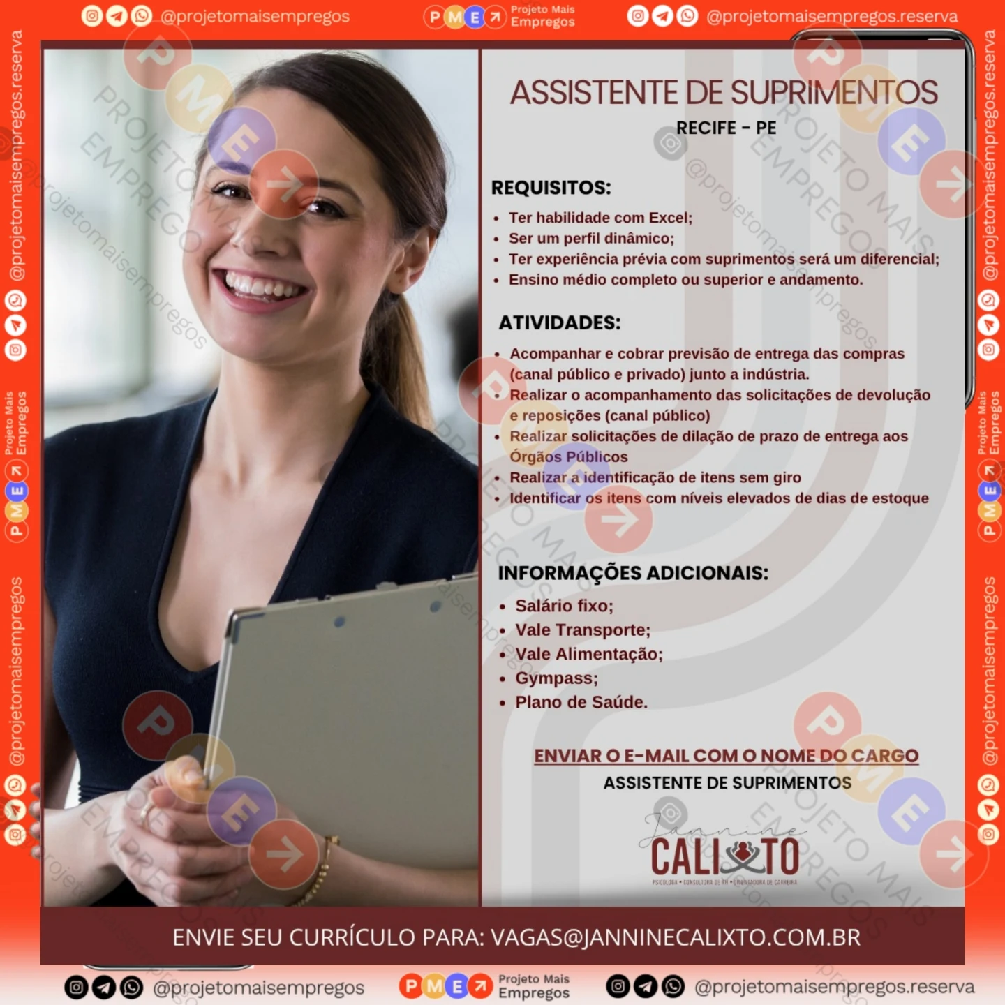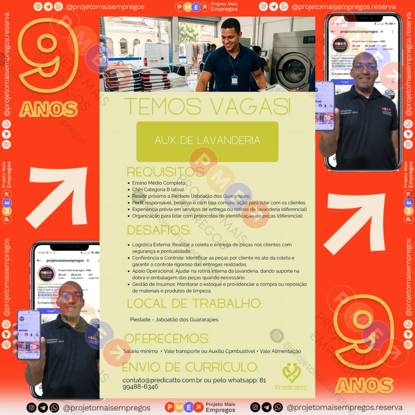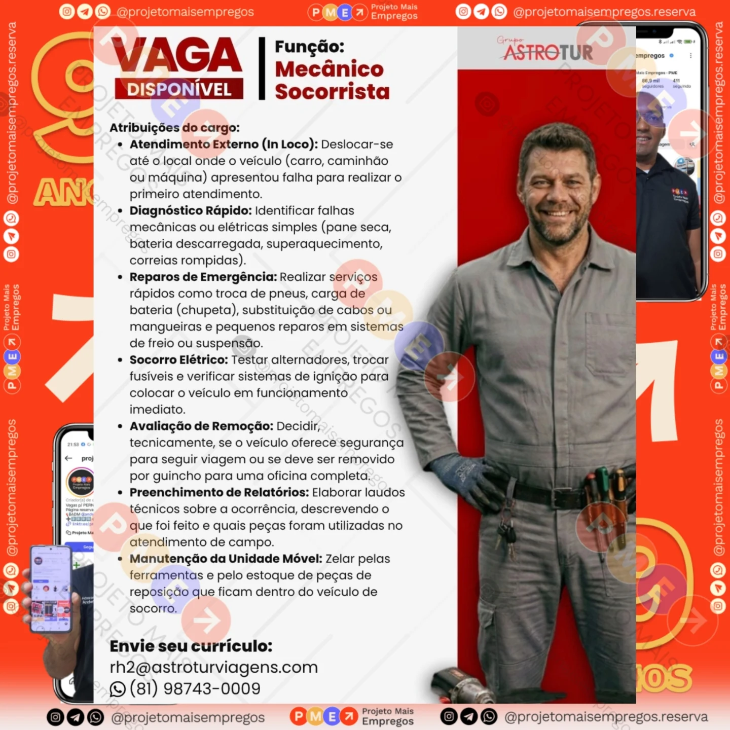 As informações sobre a vaga de emprego, como salário, remuneração, benefícios, requisitos, local de trabalho, forma de candidatura (e-mail ou whatsapp para enviar seu currículo) etc., estarão na imagem acima, caso estejam disponíveis.