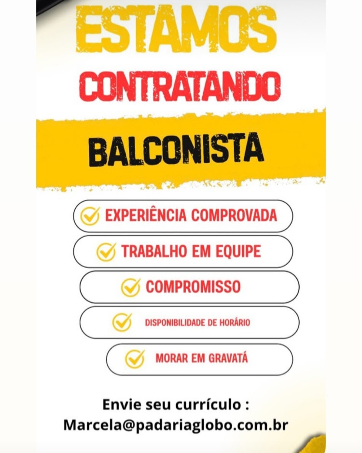 1 Vaga de emprego para Balconista em Padariaglobo.com.br nesta sexta-feira (03/04)