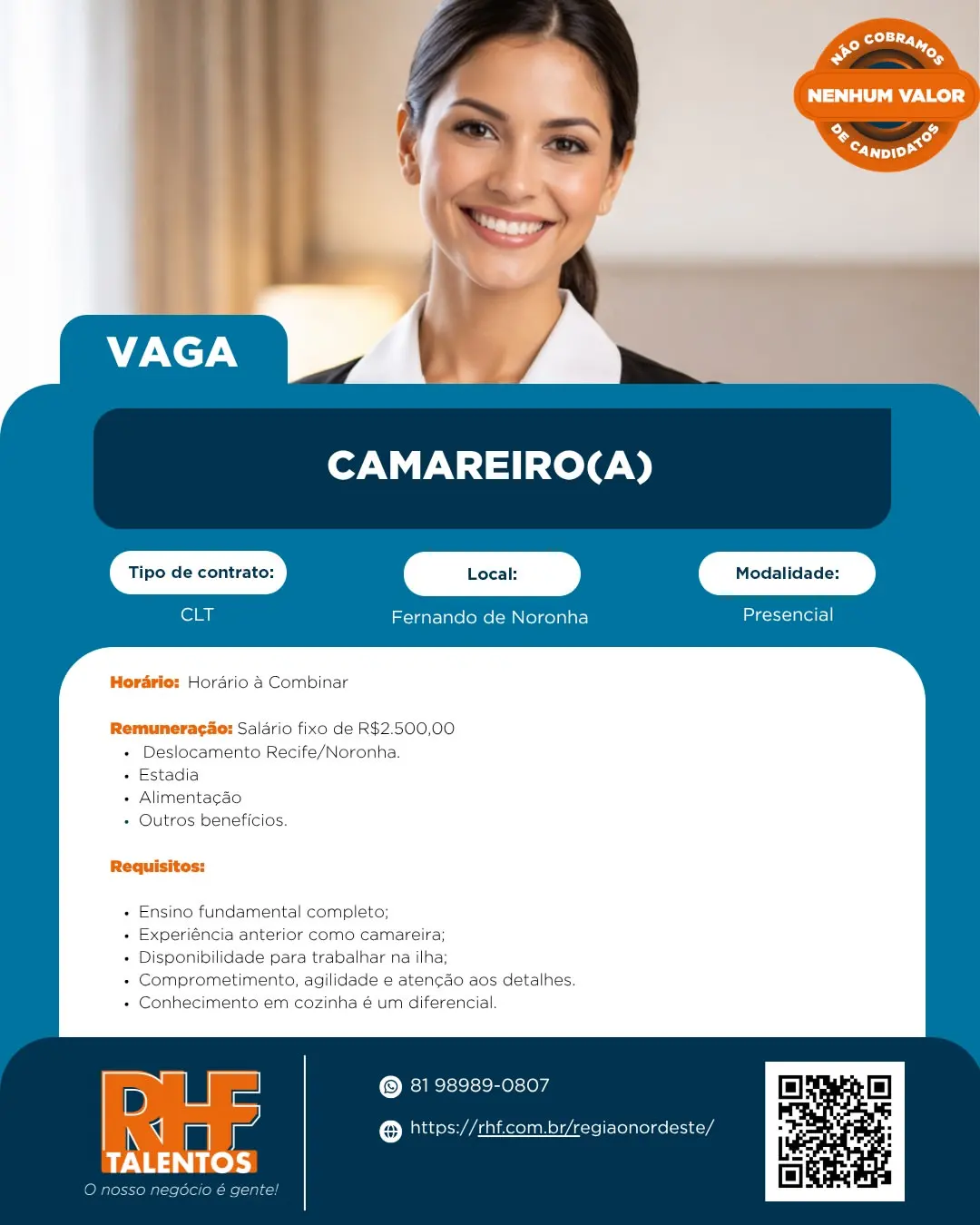 1 Vaga de emprego para Camareiro(a) / Governanta em Rhf Talentos neste sábado (11/04)