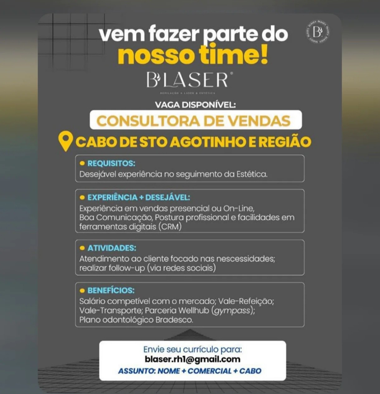 1 Vaga de emprego para Consultor(a) de Vendas em B’laser nesta terça-feira (21/04)