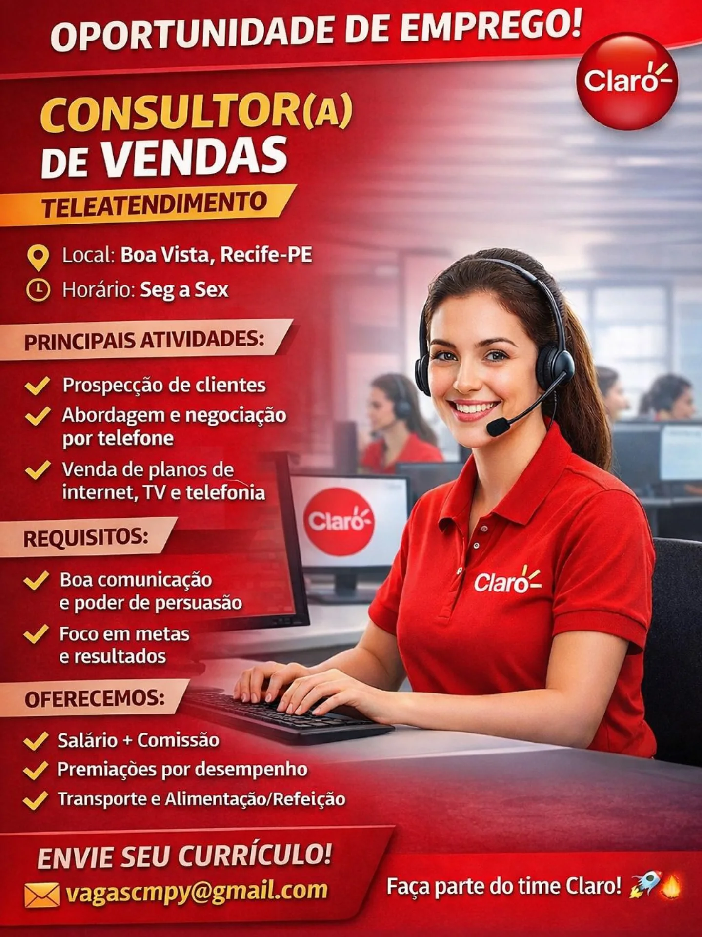 1 Vaga de emprego para Consultor(a) de Vendas em Claro neste domingo (19/04)