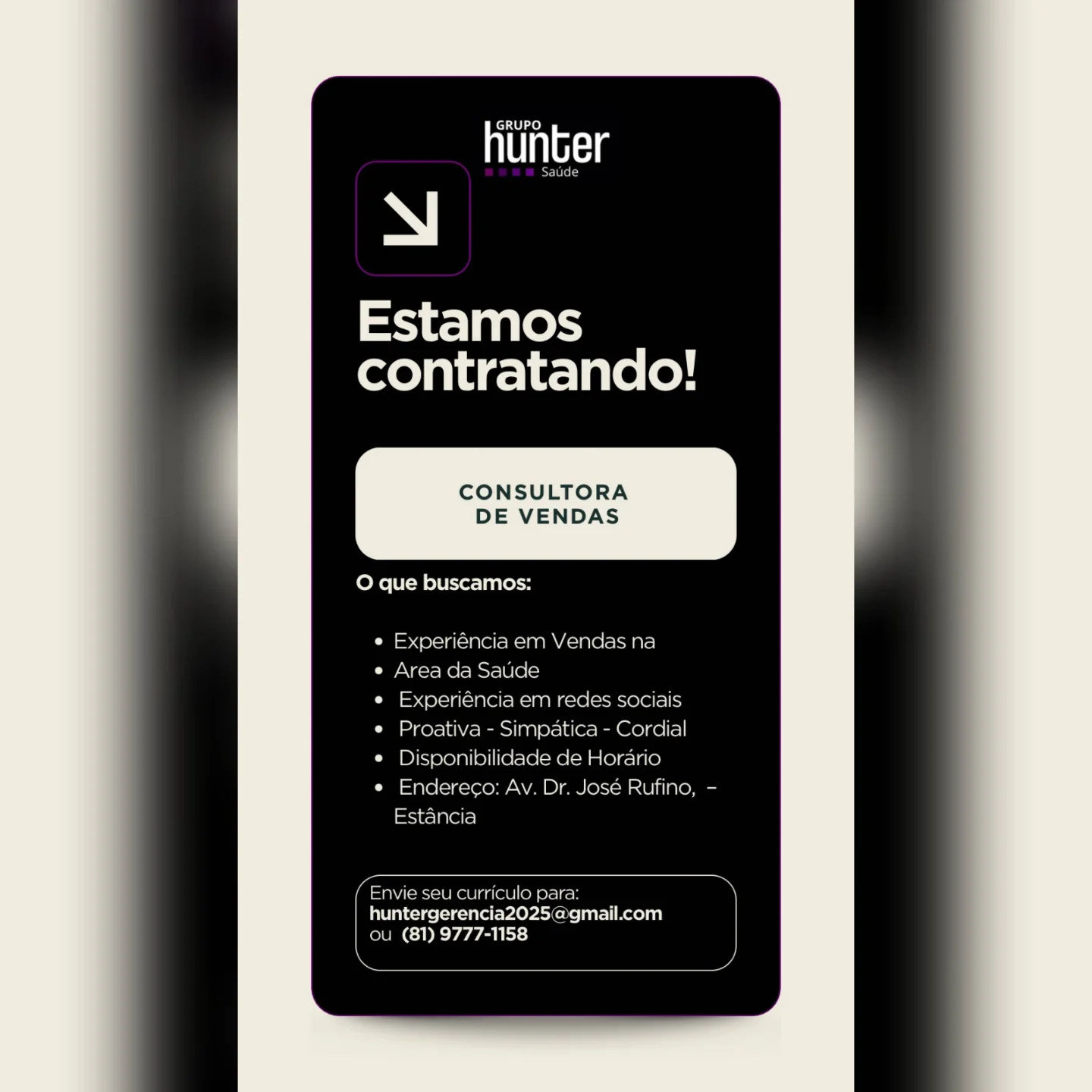 As informações sobre a vaga de emprego, como salário, remuneração, benefícios, requisitos, local de trabalho, forma de candidatura (e-mail ou whatsapp para enviar seu currículo) etc., estarão na imagem abaixo, caso estejam disponíveis.👇