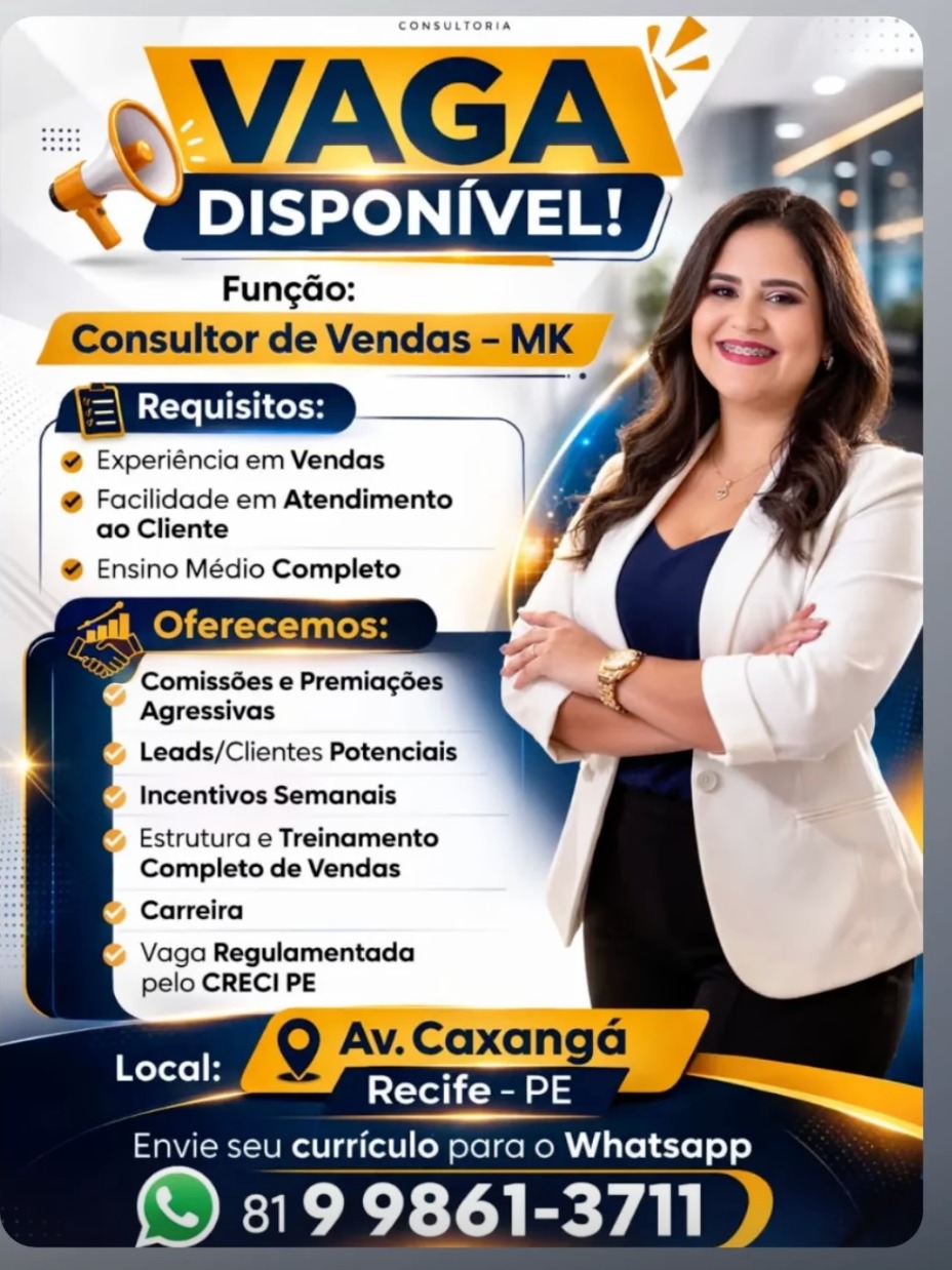 1 Vaga de emprego para Consultor(A) De Vendas em Pernambuco nesta quinta-feira (26/03)