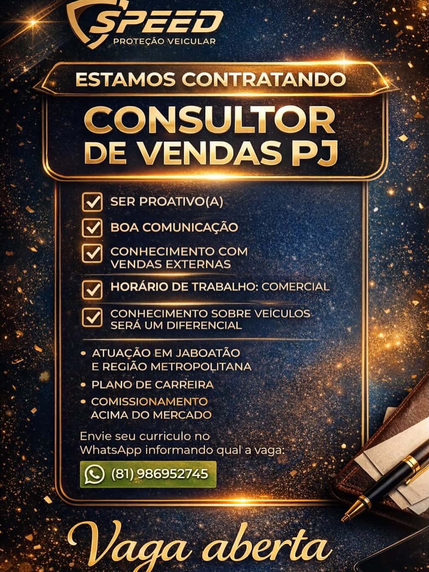 1 Vaga de emprego para Consultor(A) De Vendas em Speed Proteção Veicular neste sábado (04/04)