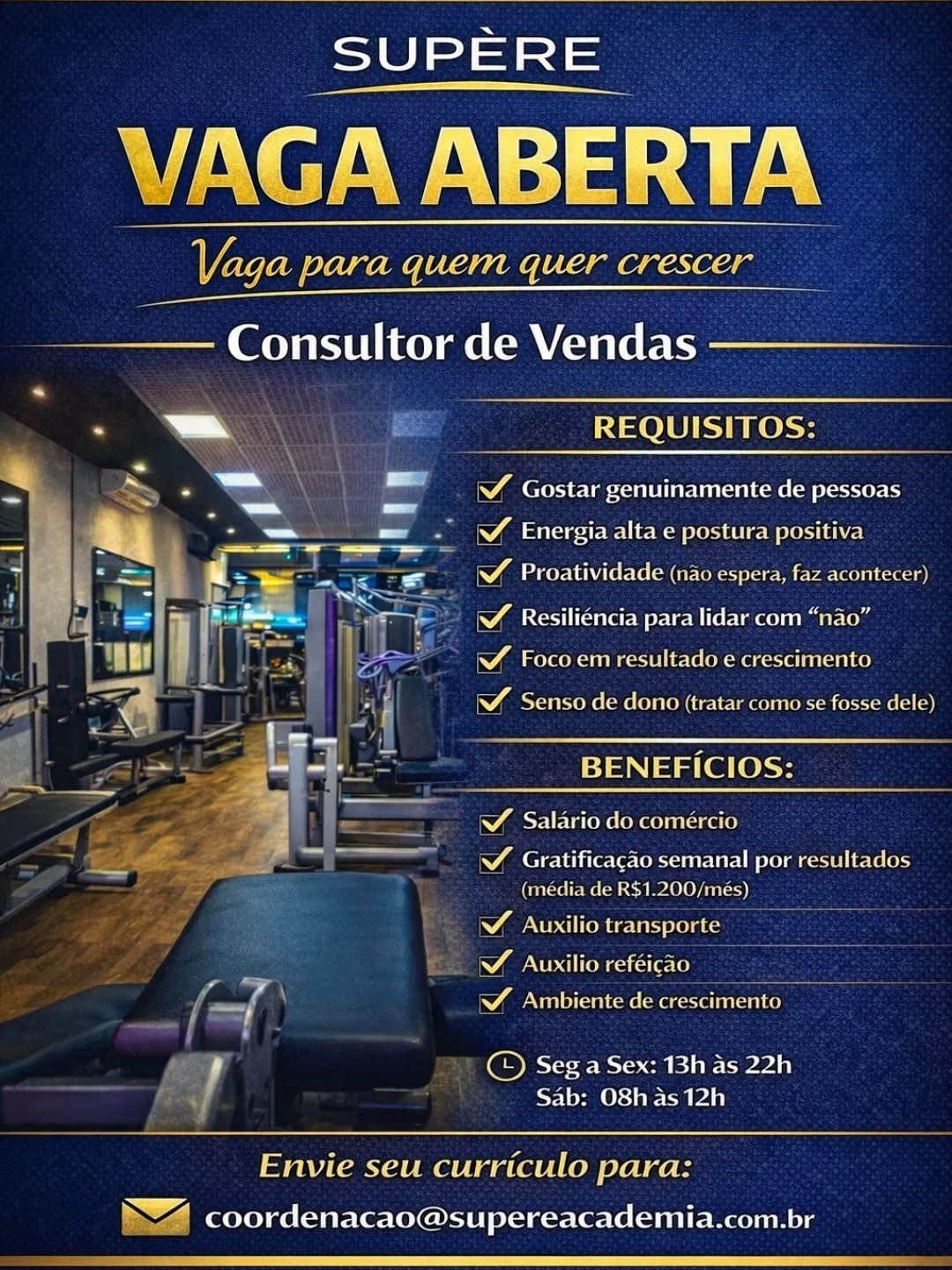 1 Vaga de emprego para Consultor(a) de Vendas em Supere Academia nesta terça-feira (14/04)