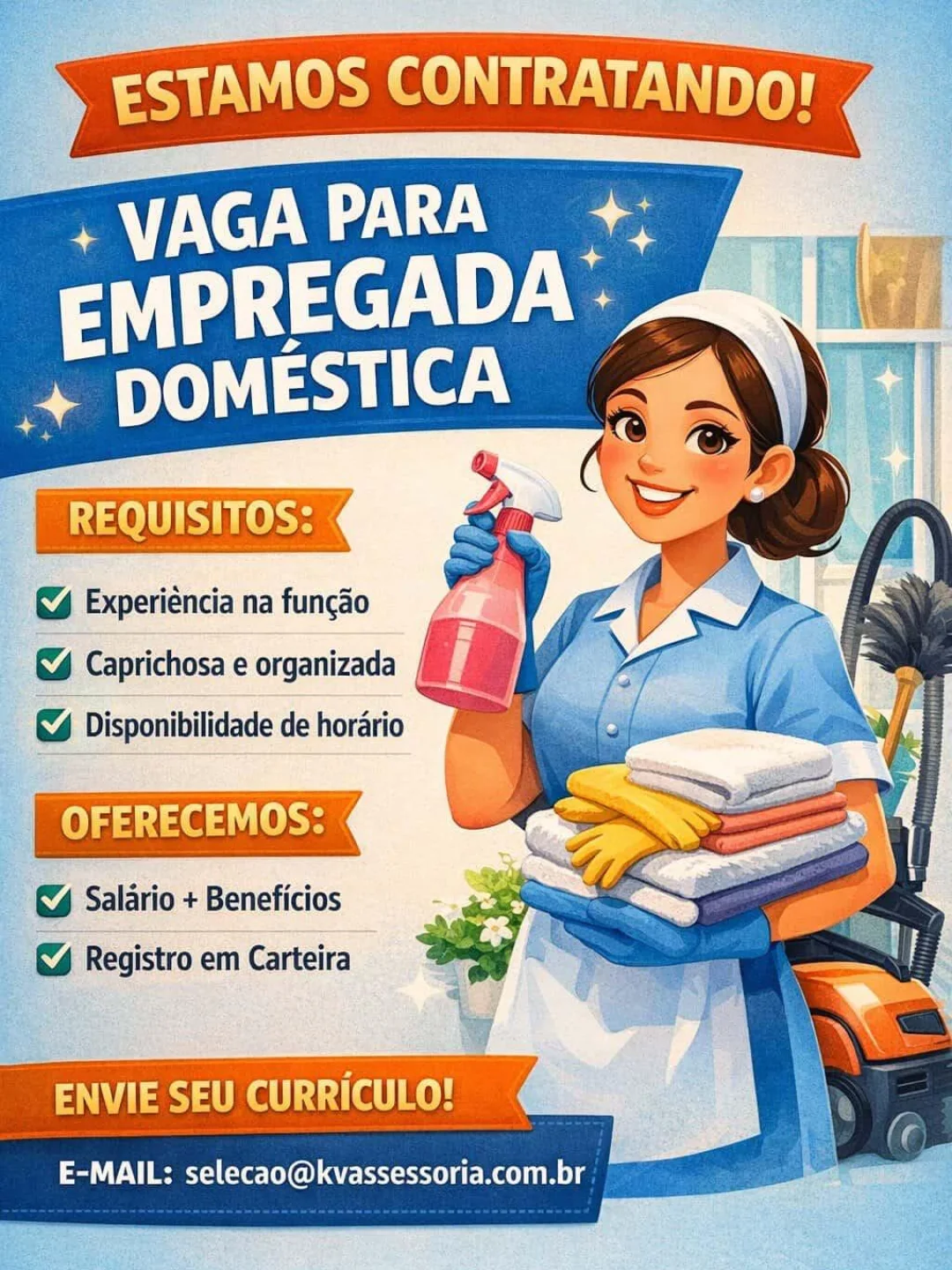 1 Vaga de emprego para Empregado(A) Doméstica em Kvassessoria.com.br ( ) nesta sexta-feira (27/03)