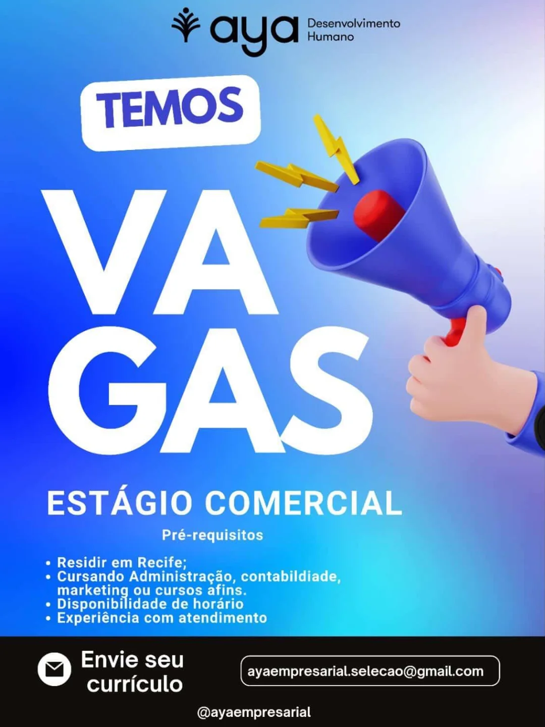 1 Vaga de emprego para Estagiário(A) em Aya Desenvolvimento Humano nesta segunda-feira (30/03)