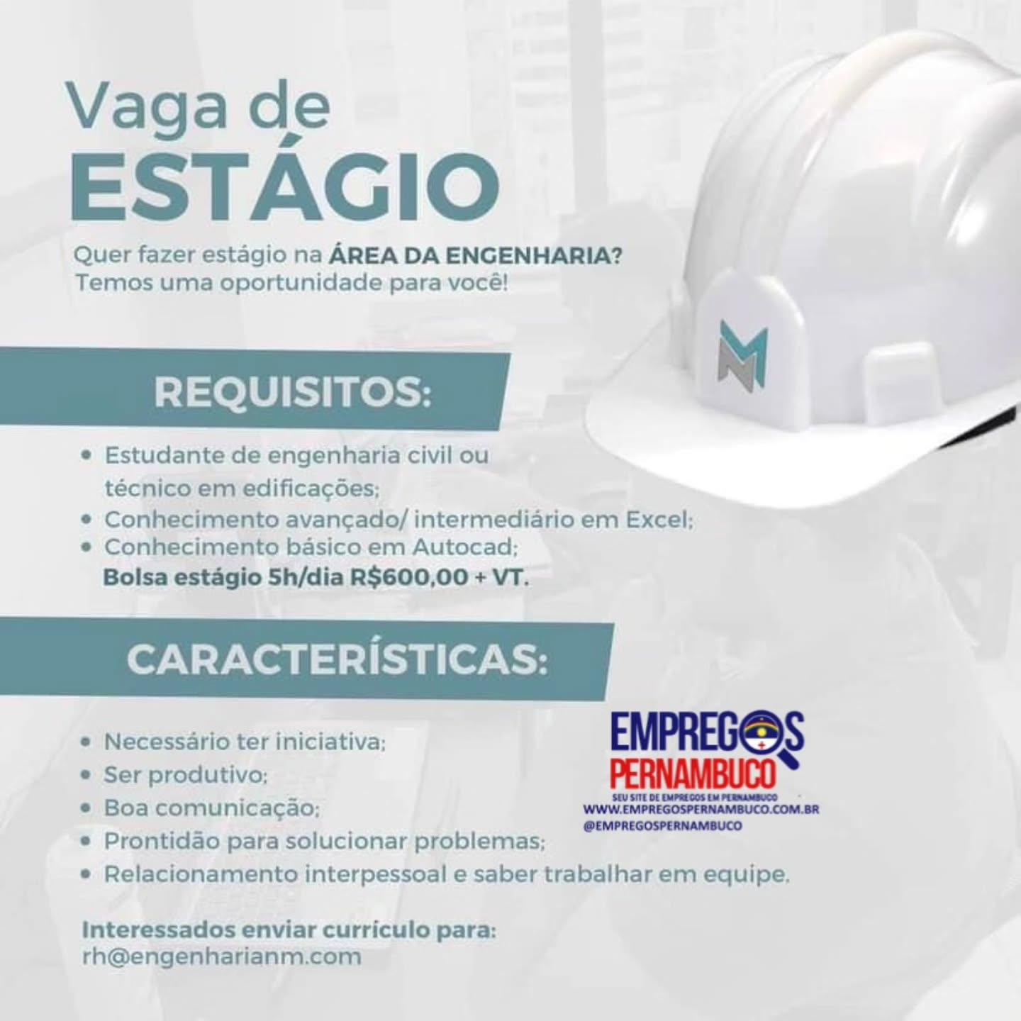 1 Vaga de emprego para Estagiário(A) em Engenharianm (Presente ) nesta quarta-feira (01/04)