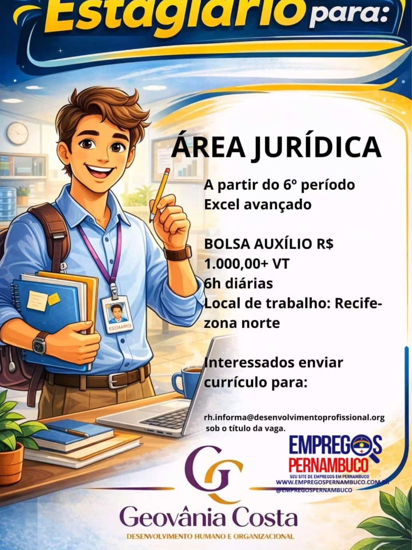 1 Vaga de emprego para Estagiário(a) em Geovânia Costa – Desenvolvimento Humano E Organizacional nesta sexta-feira (17/04)
