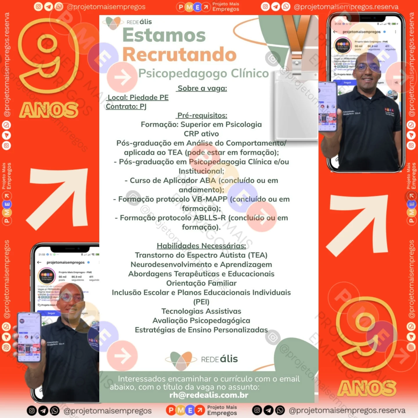 As informações sobre a vaga de emprego, como salário, remuneração, benefícios, requisitos, local de trabalho, forma de candidatura (e-mail ou whatsapp para enviar seu currículo) etc., estarão na imagem acima, caso estejam disponíveis.