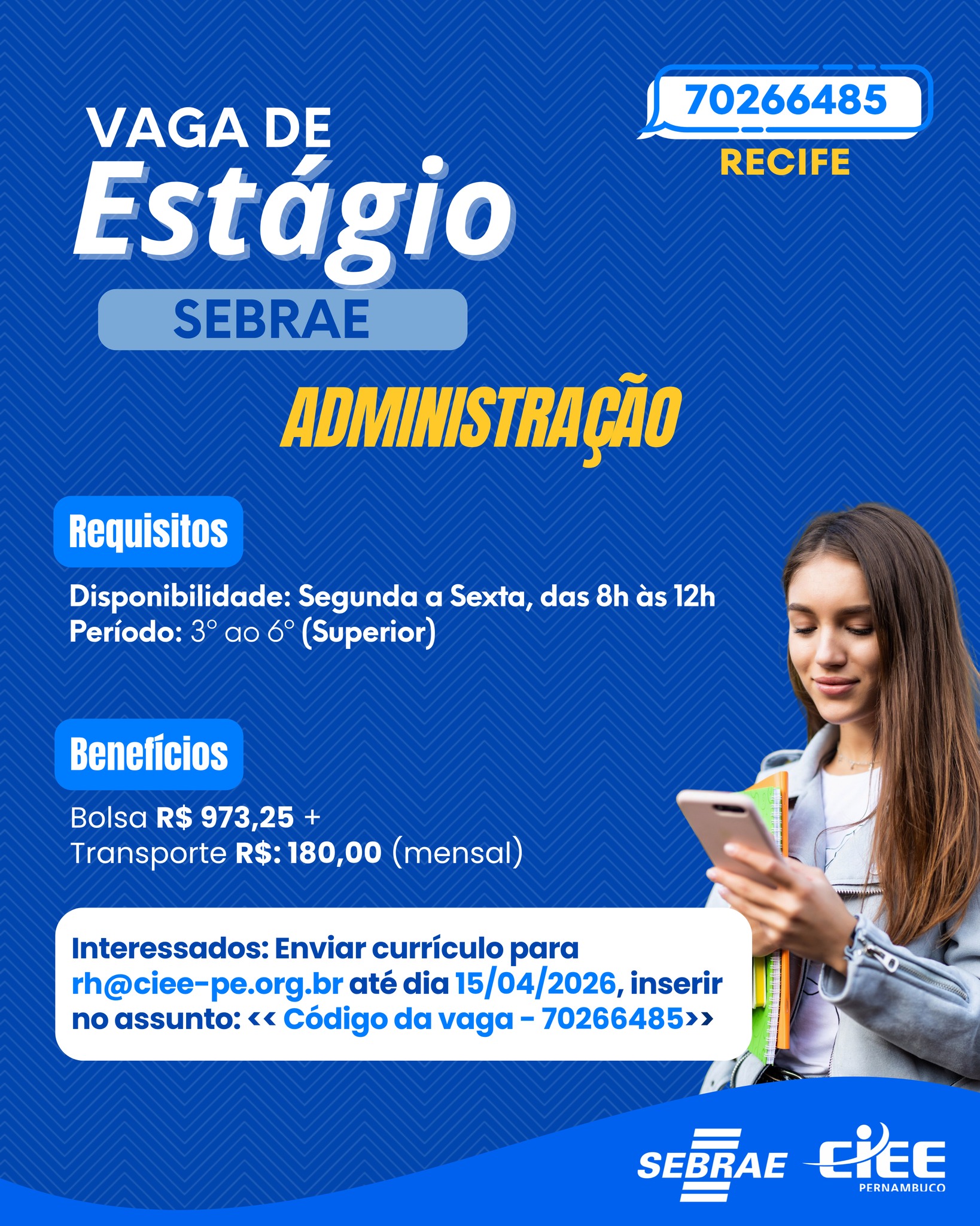 1 Vaga de emprego para Estagiário(a) em Sebrae; Ciee Pernambuco neste domingo (12/04)