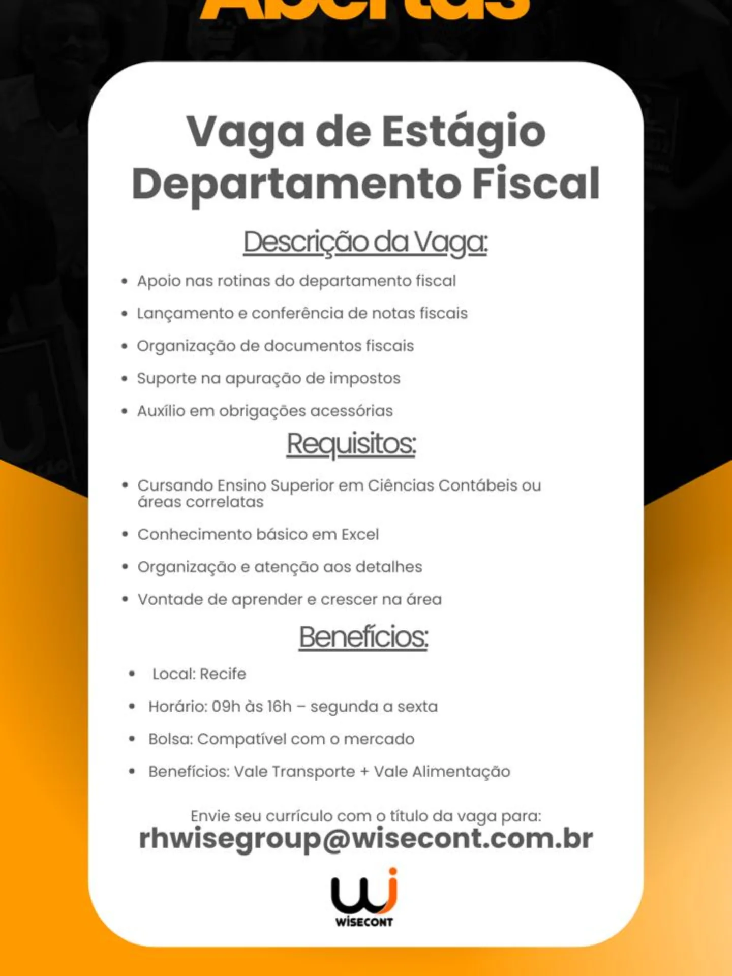 1 Vaga de emprego para Estagiário(a) em Wisecont nesta sexta-feira (24/04)