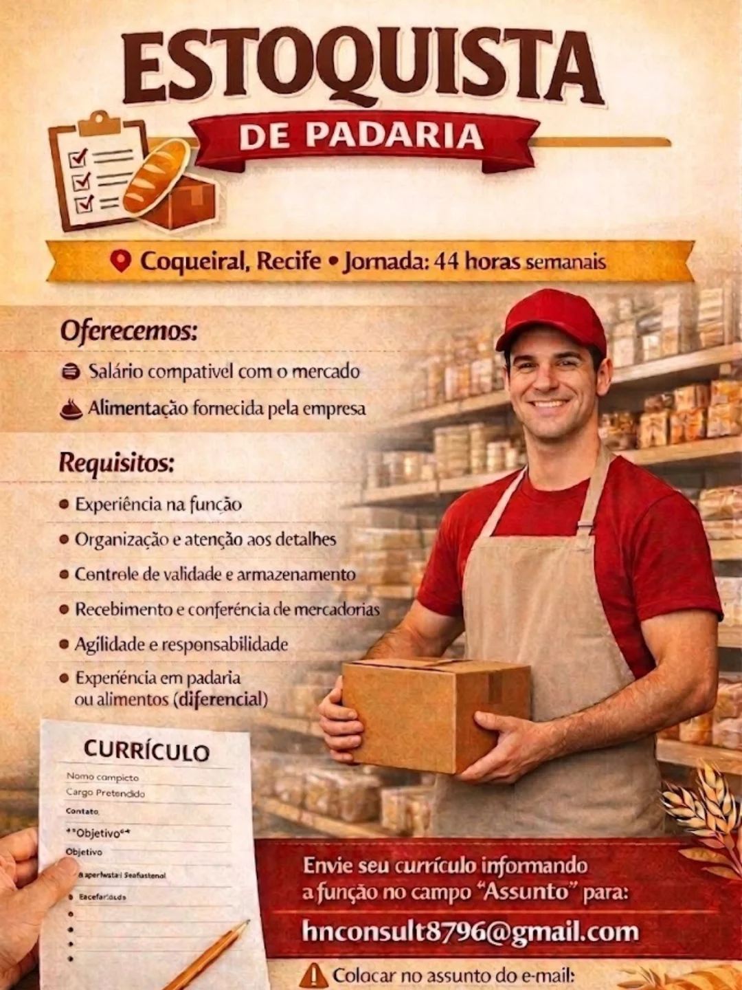 1 Vaga de emprego para Estoquista em Pernambuco neste sábado (18/04)