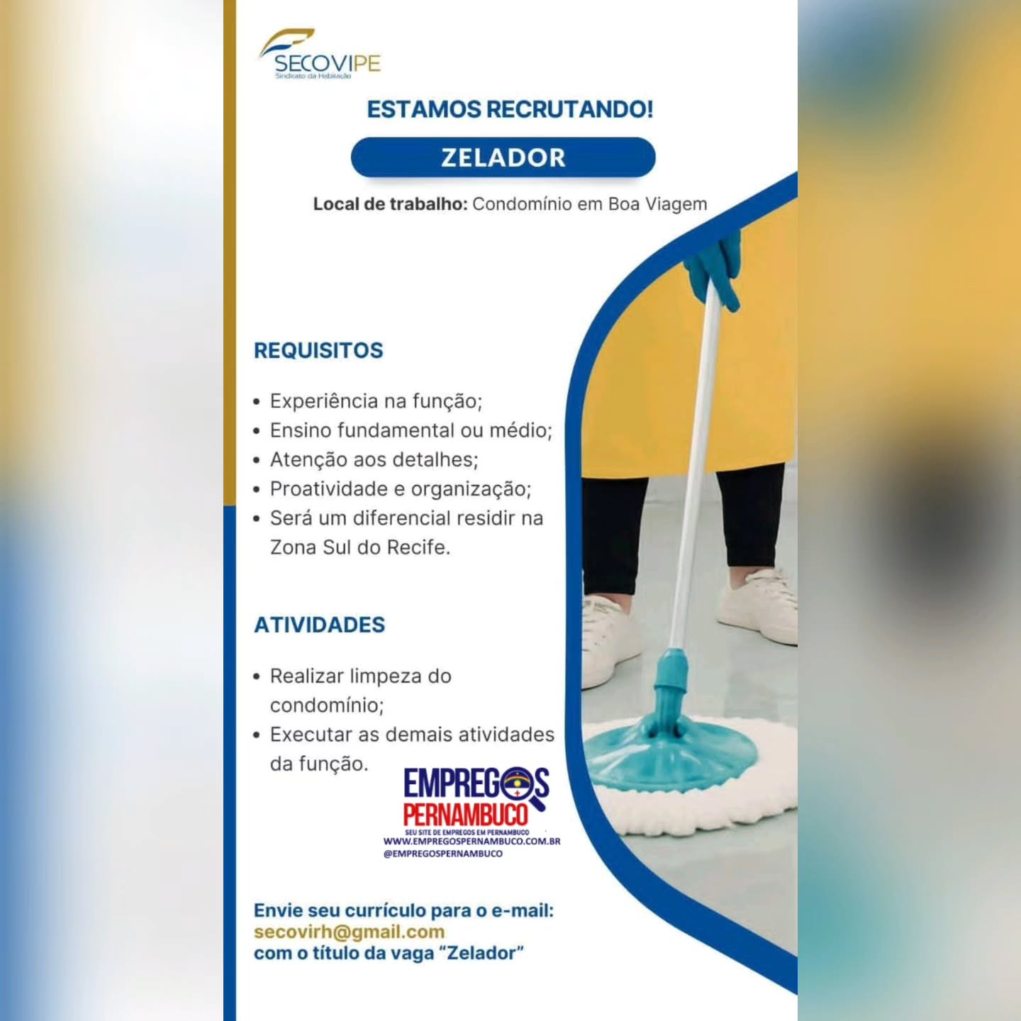 1 Vaga de emprego para Porteiro(a) / Zelador em Secovipe (Sindicato Da Habitação) nesta quinta-feira (16/04)
