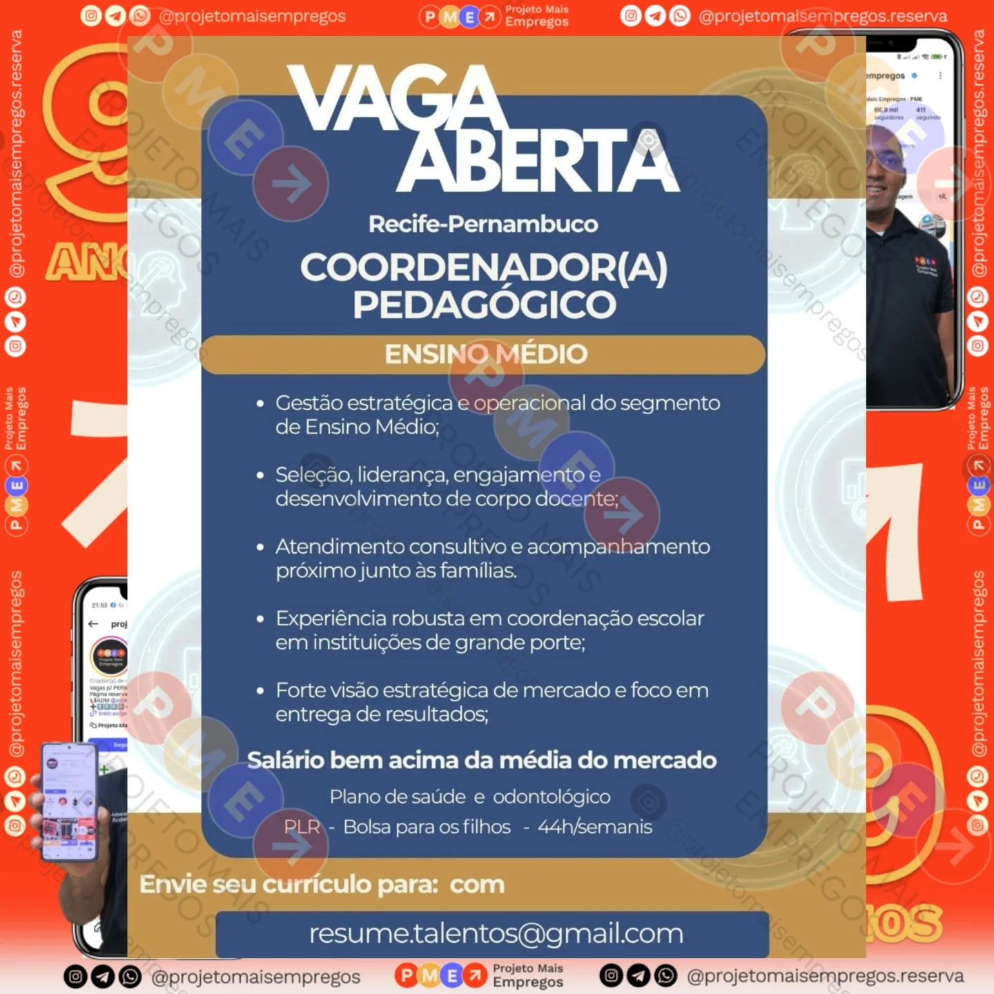 As informações sobre a vaga de emprego, como salário, remuneração, benefícios, requisitos, local de trabalho, forma de candidatura (e-mail ou whatsapp para enviar seu currículo) etc., estarão na imagem acima, caso estejam disponíveis.