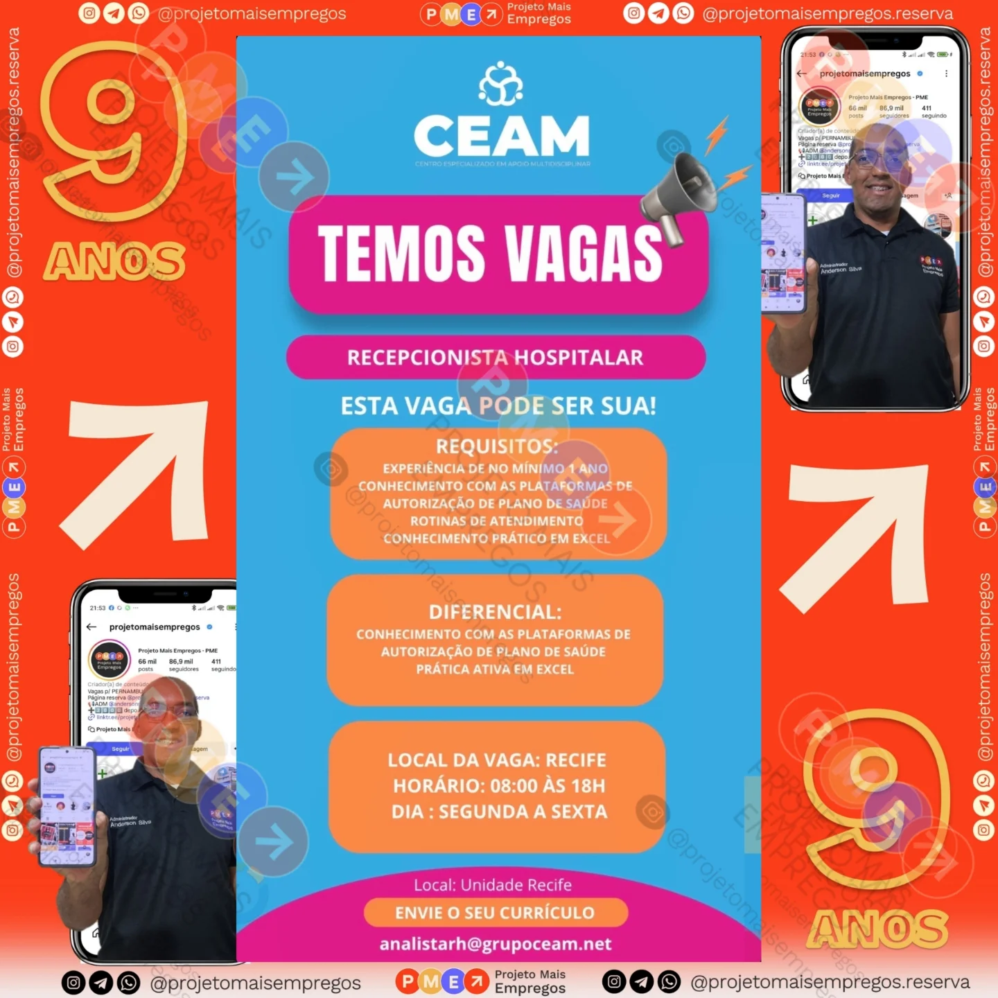 1 Vaga de emprego para Recepcionista em Ceam nesta sexta-feira (17/04)