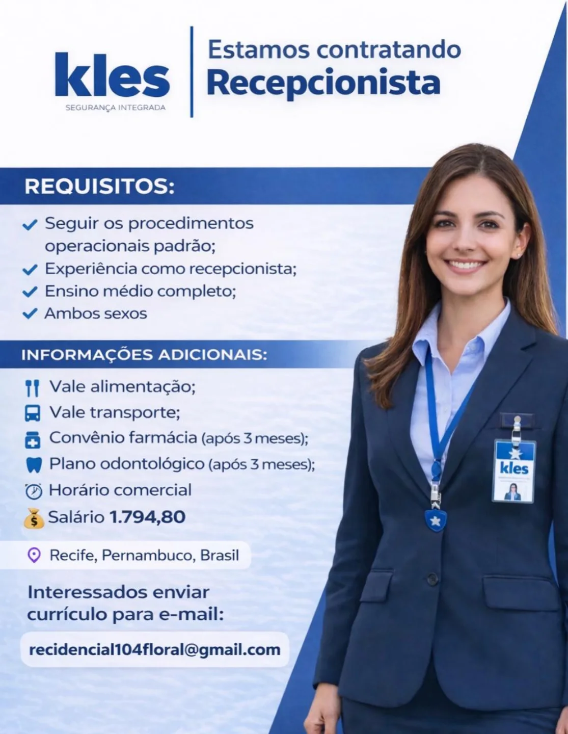 1 Vaga de emprego para Recepcionista em Kles nesta sexta-feira (27/03)