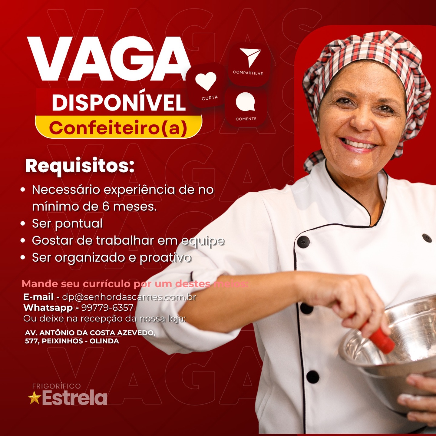 As informações sobre a vaga de emprego, como salário, remuneração, benefícios, requisitos, local de trabalho, forma de candidatura (e-mail ou whatsapp para enviar seu currículo) etc., estarão na imagem acima, caso estejam disponíveis.