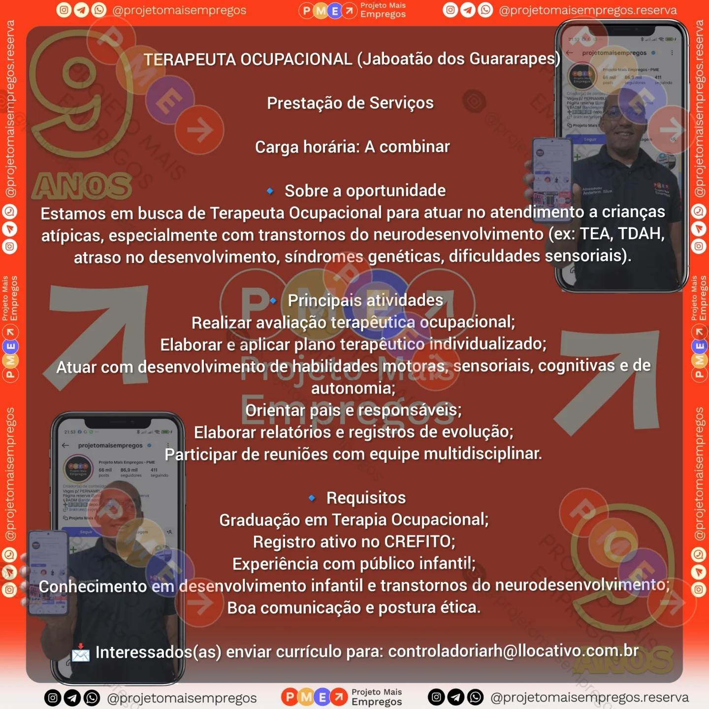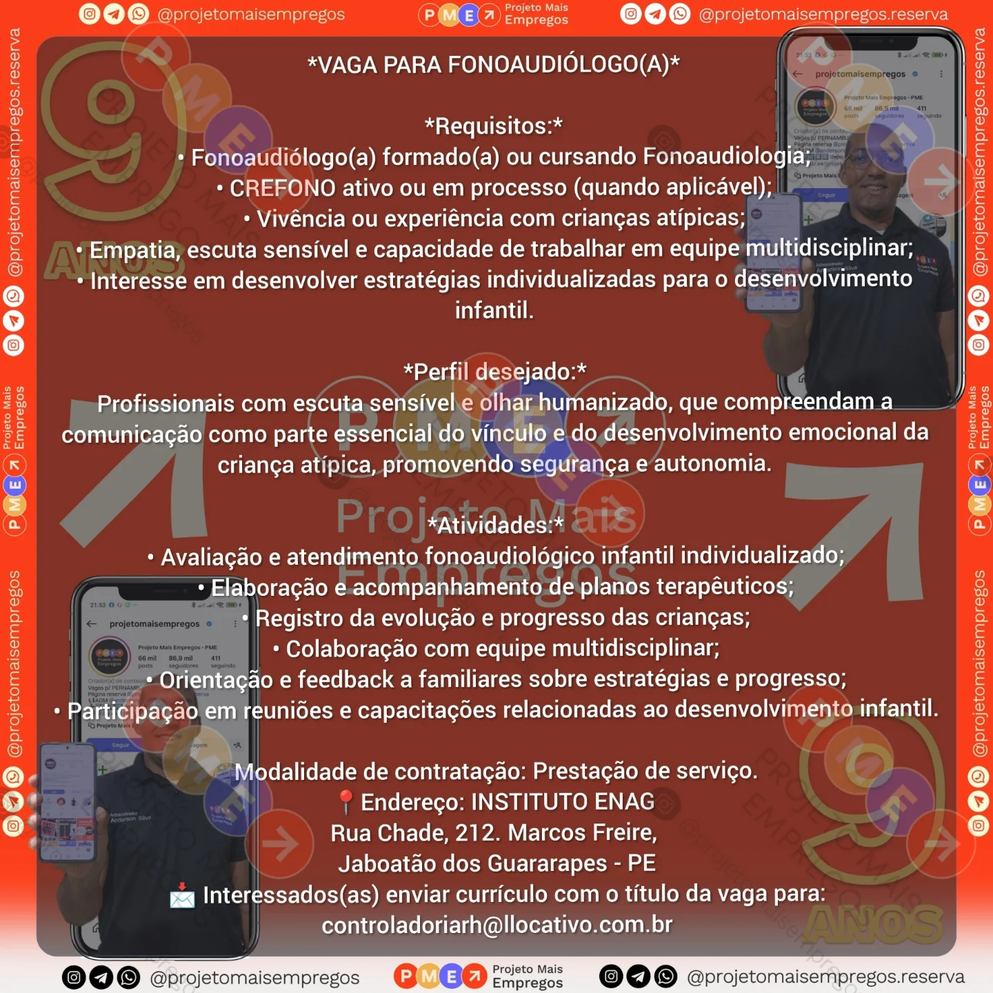 As informações sobre a vaga de emprego, como salário, remuneração, benefícios, requisitos, local de trabalho, forma de candidatura (e-mail ou whatsapp para enviar seu currículo) etc., estarão na imagem acima, caso estejam disponíveis.
