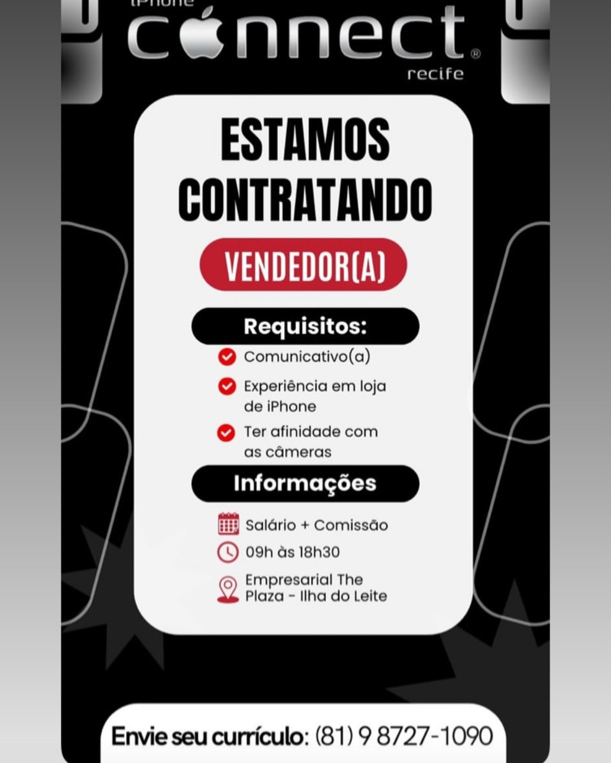 1 Vaga de emprego para Vendedor(A) em Iphone Connect Recife nesta sexta-feira (27/03)