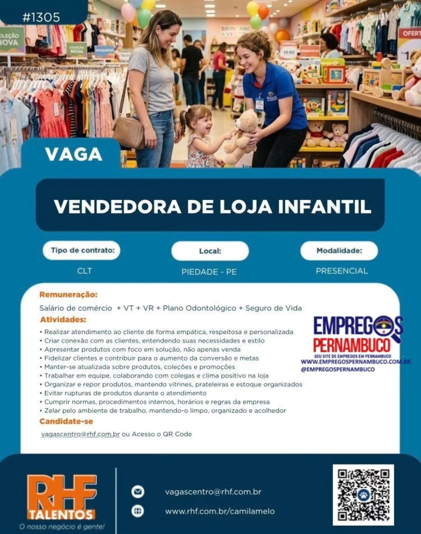 Quantidade de vagas: VENDEDOR(A): 1