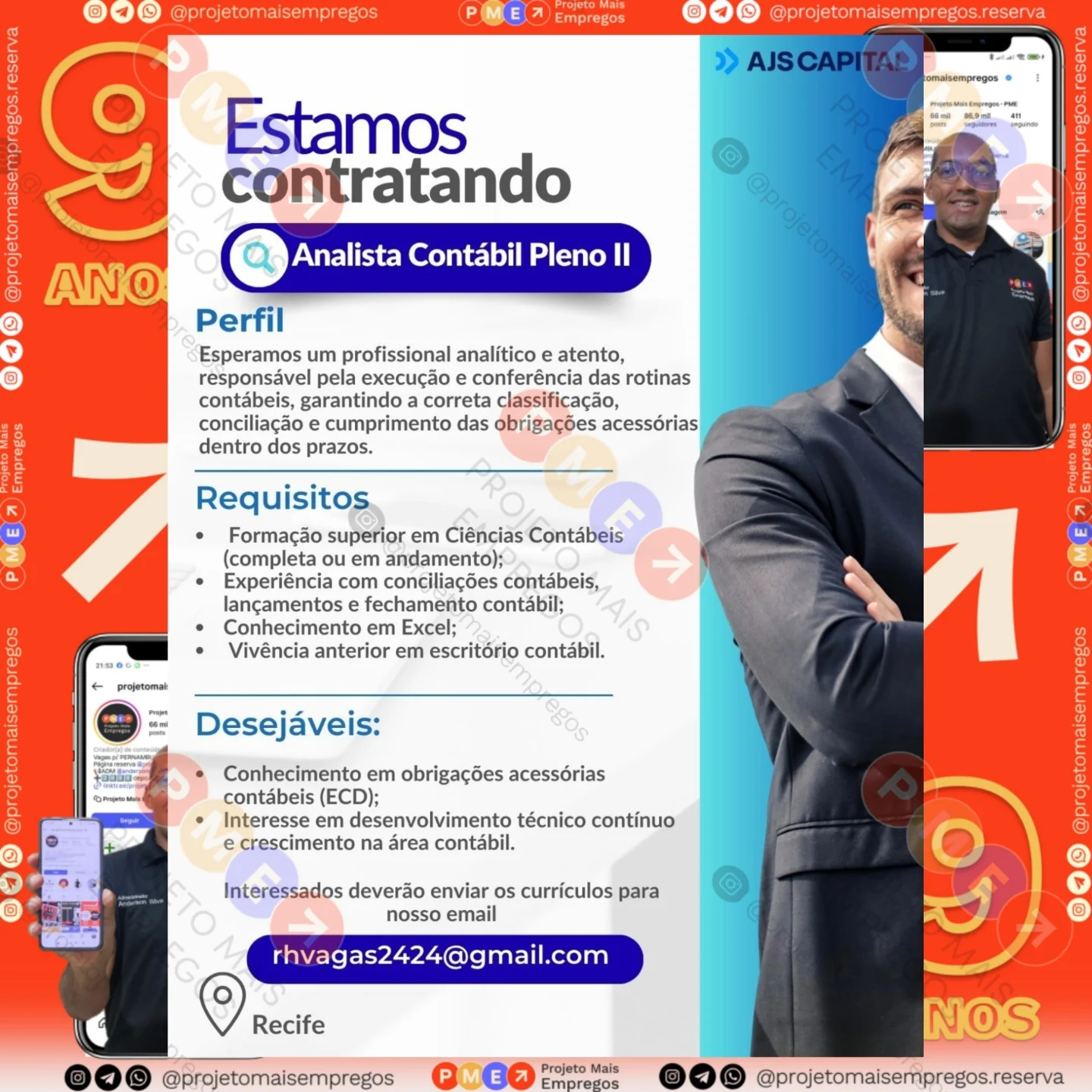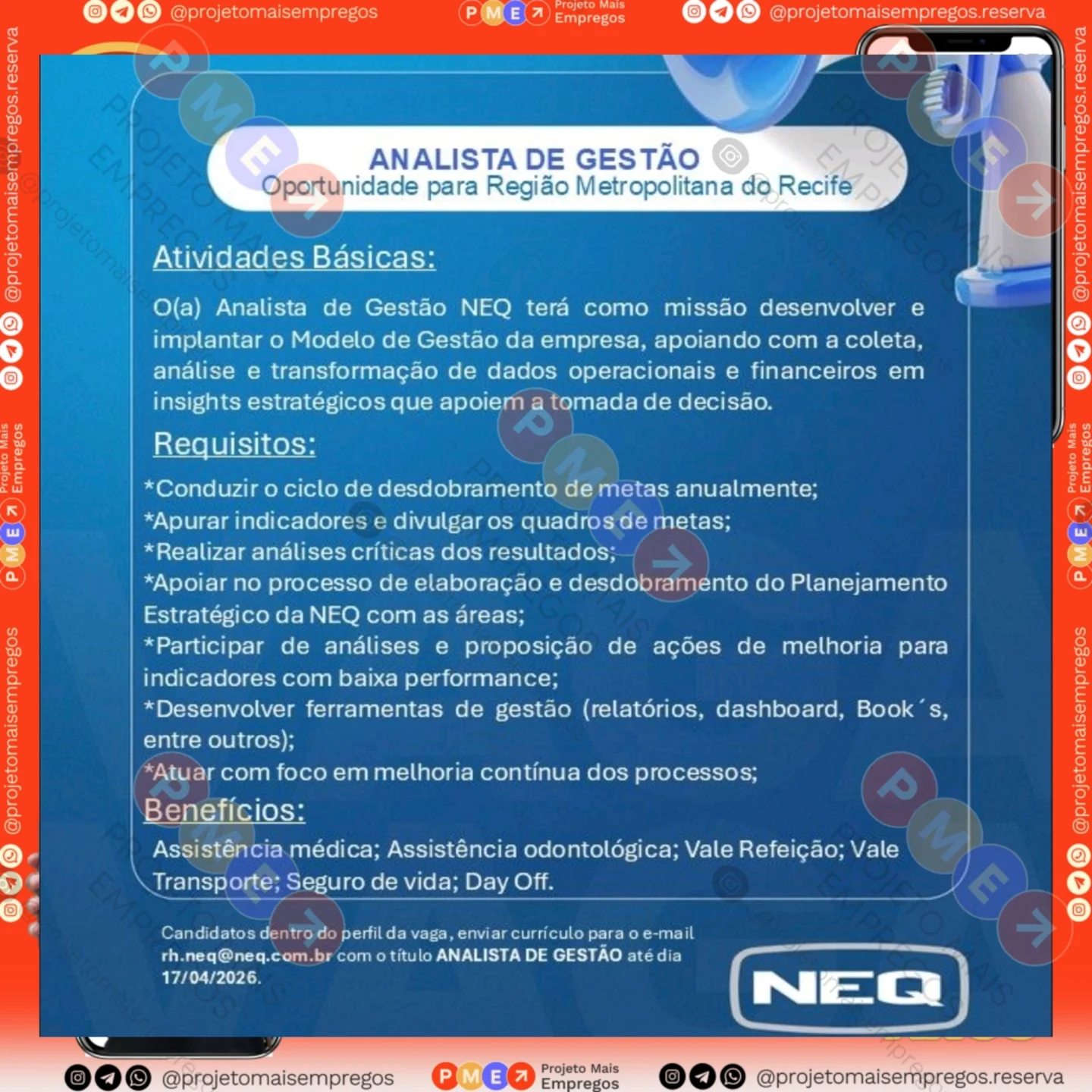 As informações sobre a vaga de emprego, como salário, remuneração, benefícios, requisitos, local de trabalho, forma de candidatura (e-mail ou whatsapp para enviar seu currículo) etc., estarão na imagem acima, caso estejam disponíveis.