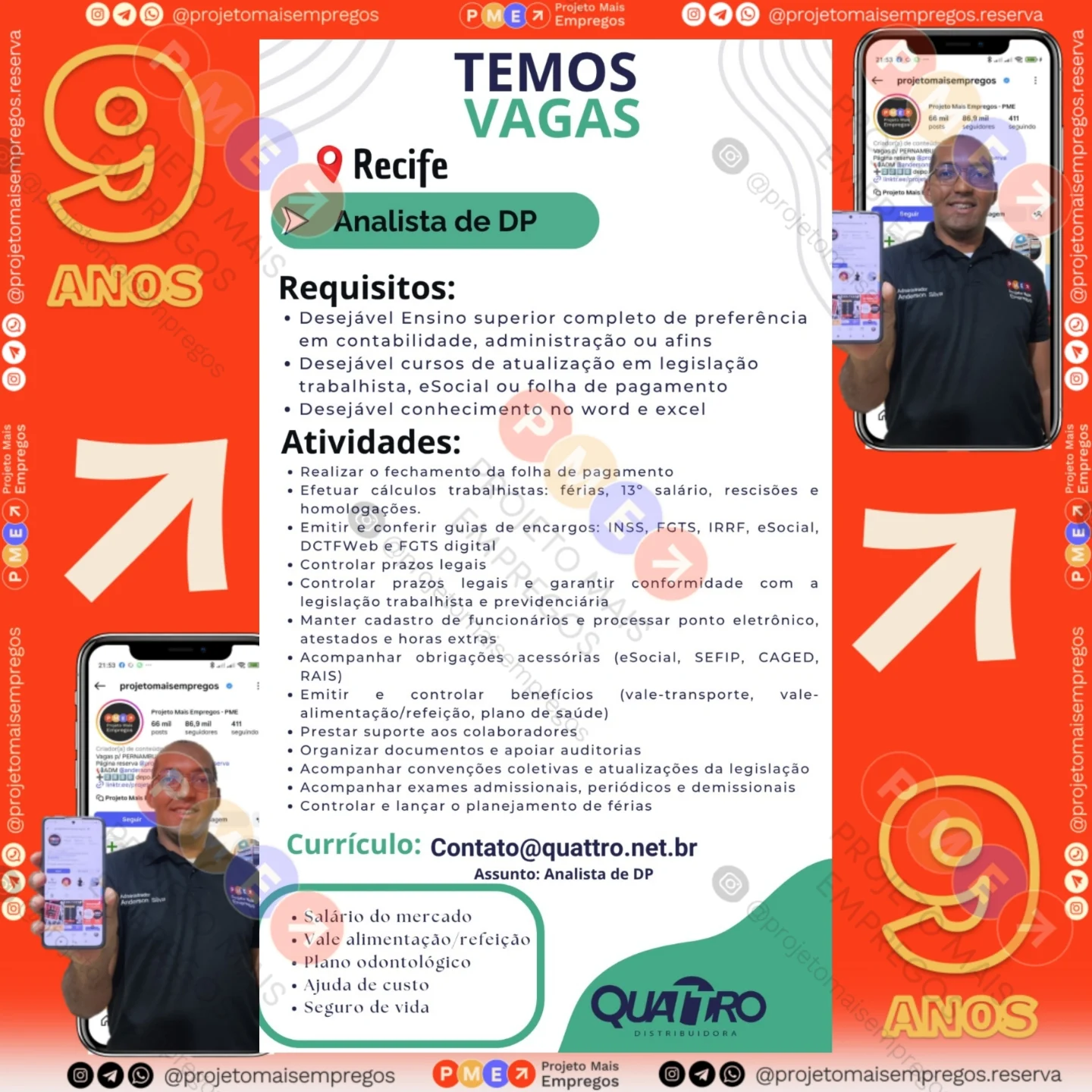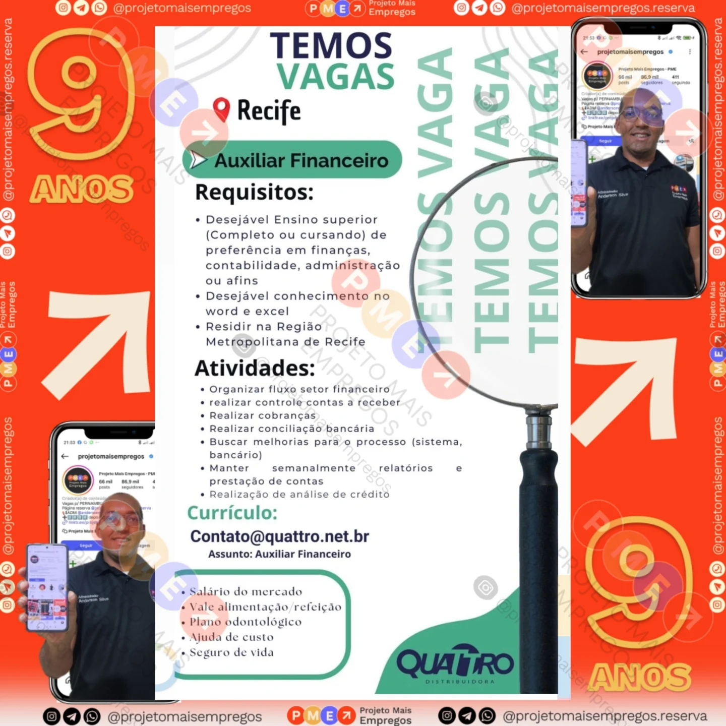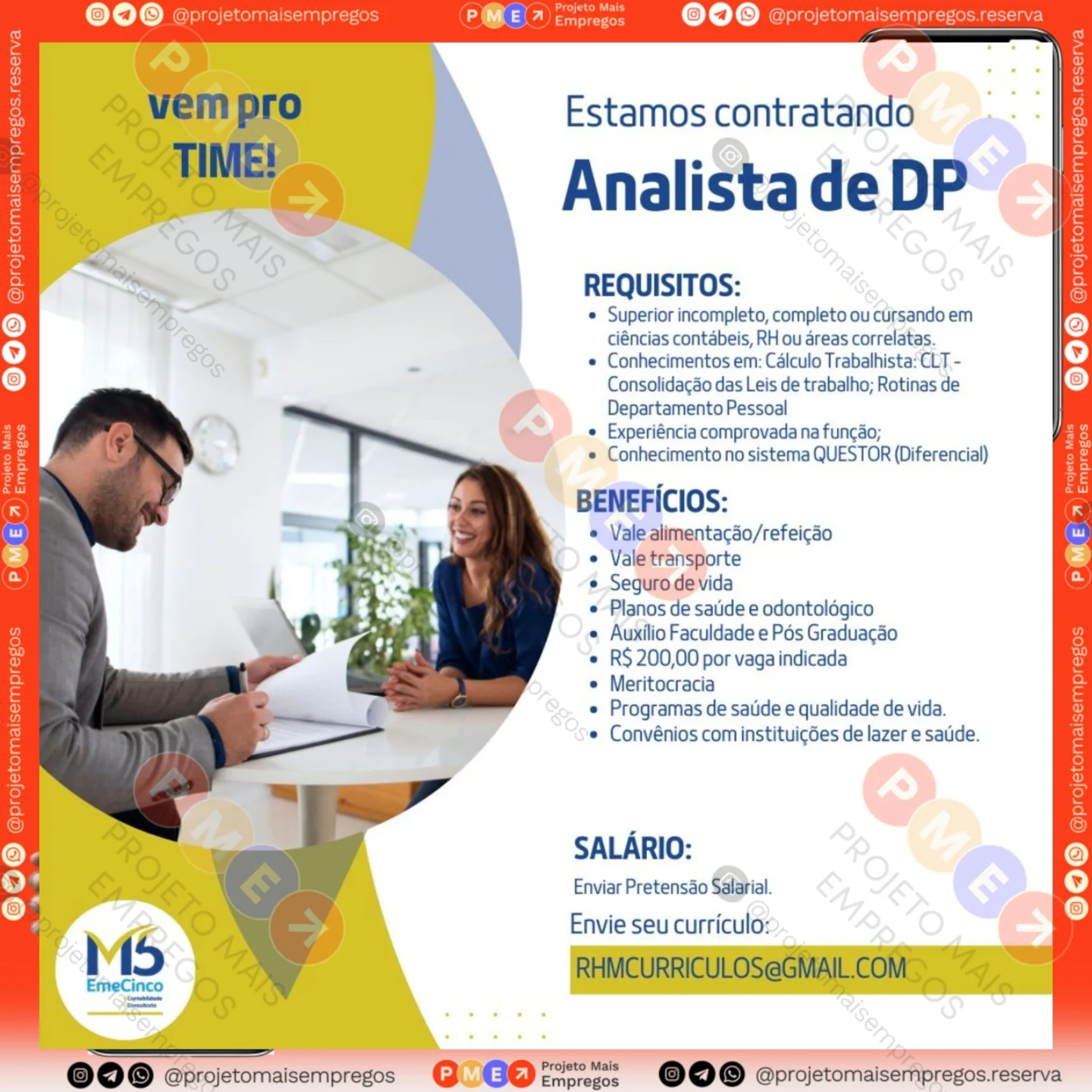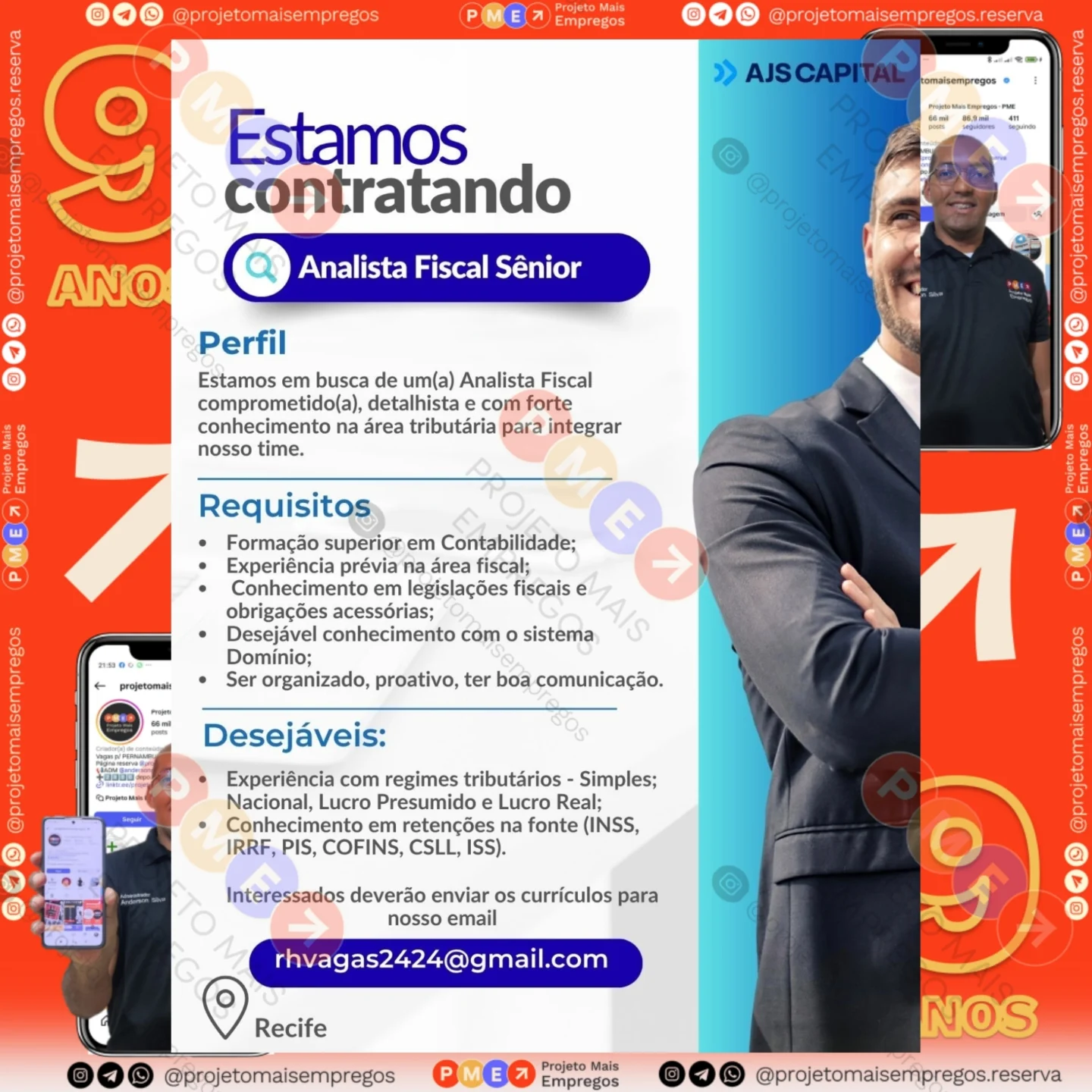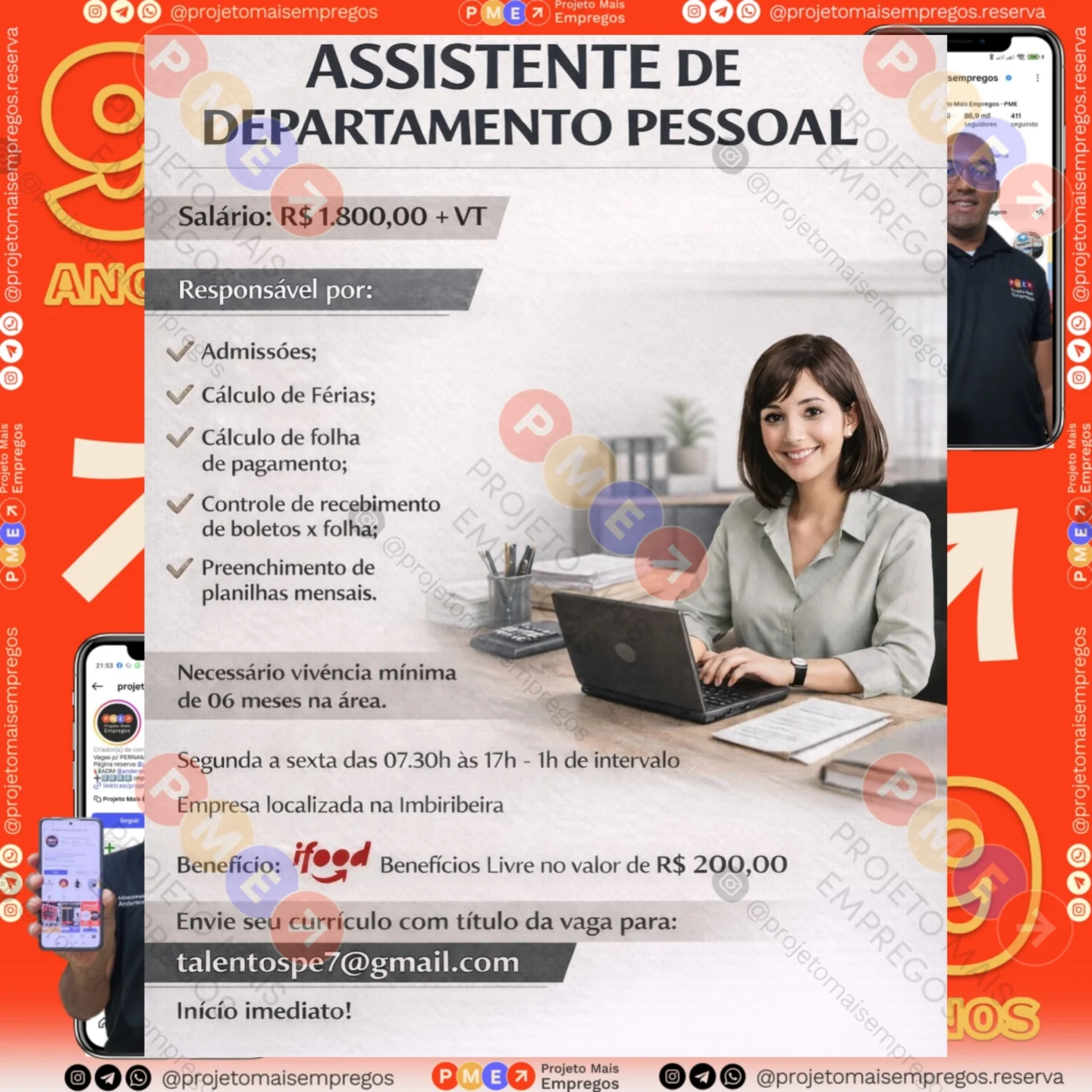 As informações sobre a vaga de emprego, como salário, remuneração, benefícios, requisitos, local de trabalho, forma de candidatura (e-mail ou whatsapp para enviar seu currículo) etc., estarão na imagem acima, caso estejam disponíveis.