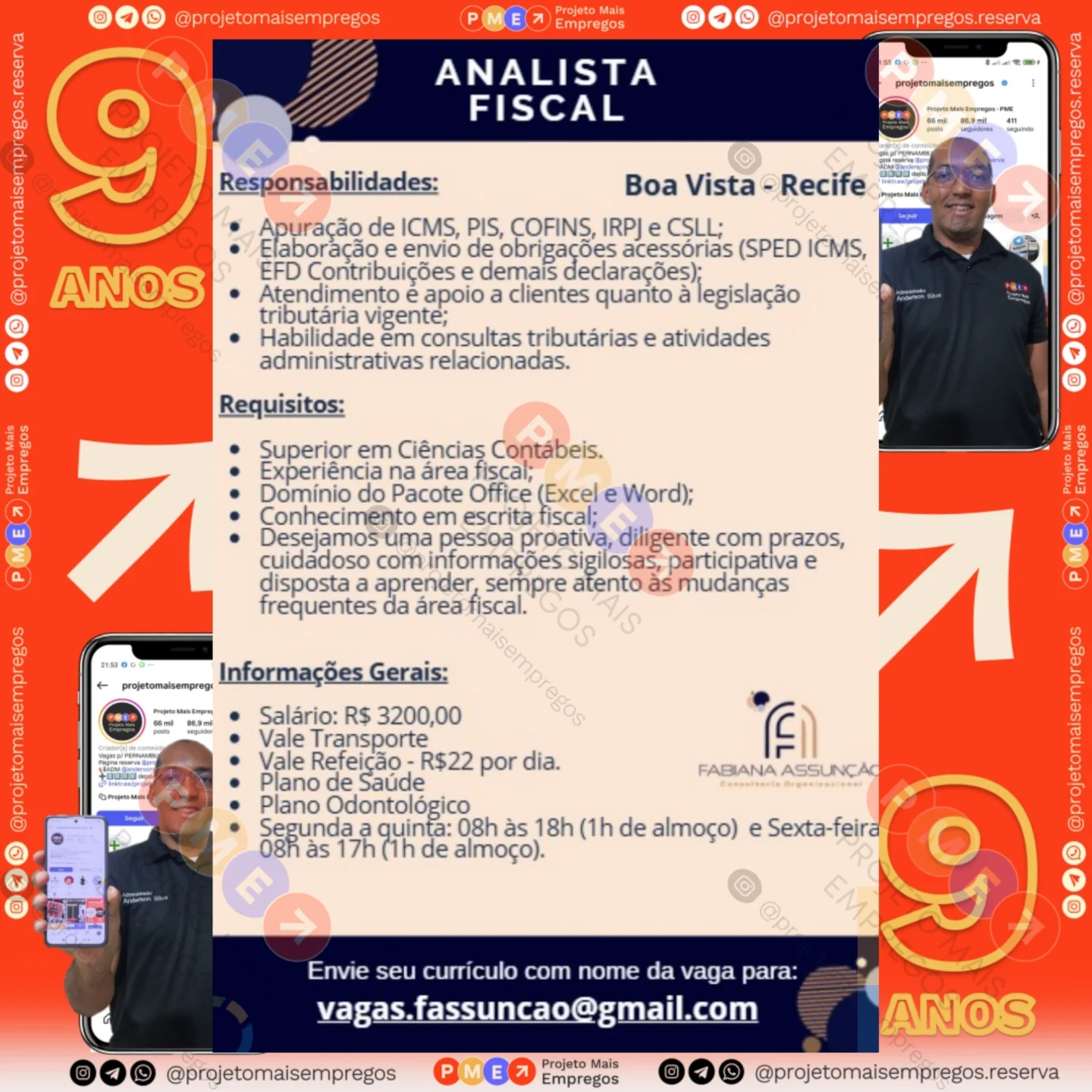 As informações sobre a vaga de emprego, como salário, remuneração, benefícios, requisitos, local de trabalho, forma de candidatura (e-mail ou whatsapp para enviar seu currículo) etc., estarão na imagem abaixo, caso estejam disponíveis.👇