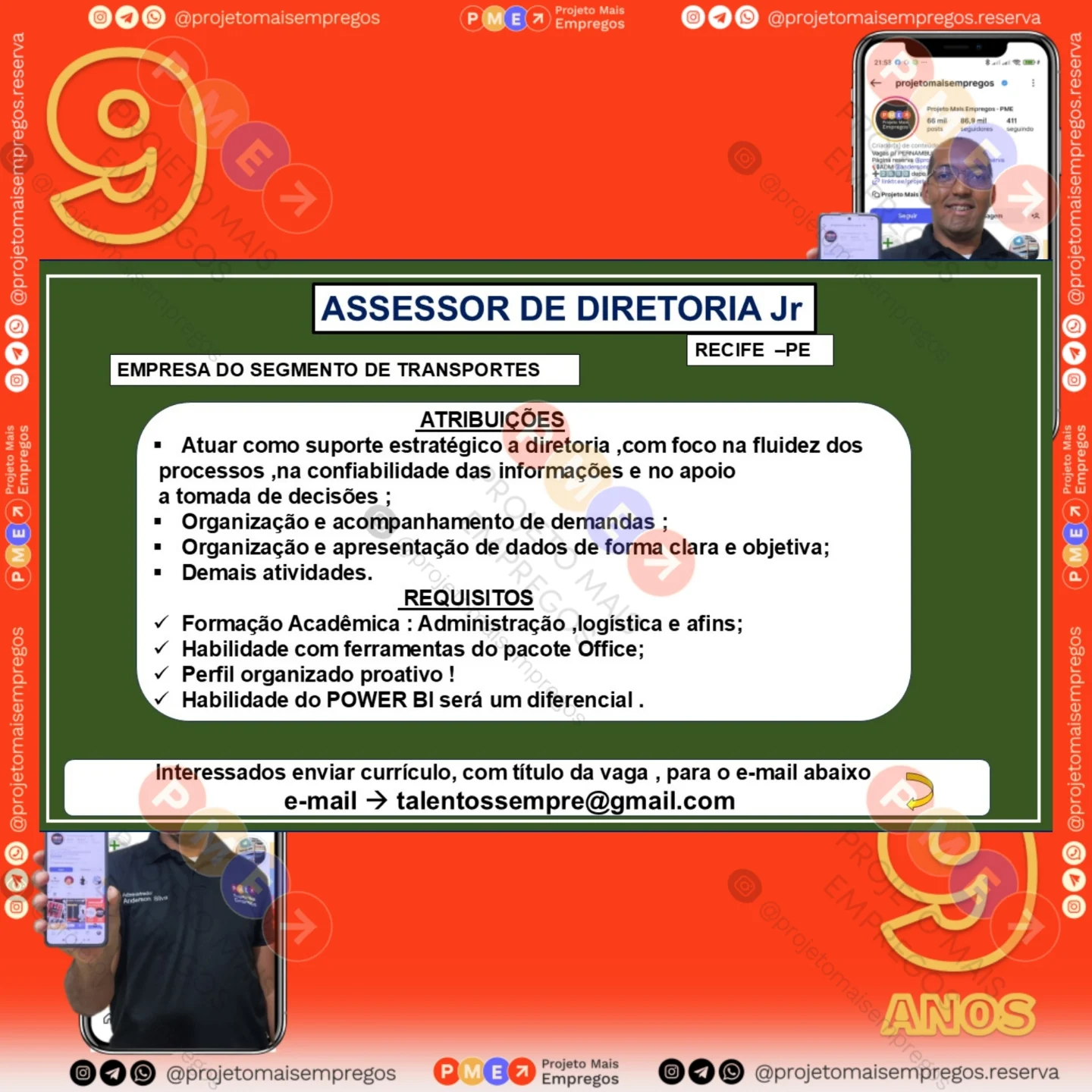 As informações sobre a vaga de emprego, como salário, remuneração, benefícios, requisitos, local de trabalho, forma de candidatura (e-mail ou whatsapp para enviar seu currículo) etc., estarão na imagem acima, caso estejam disponíveis.
