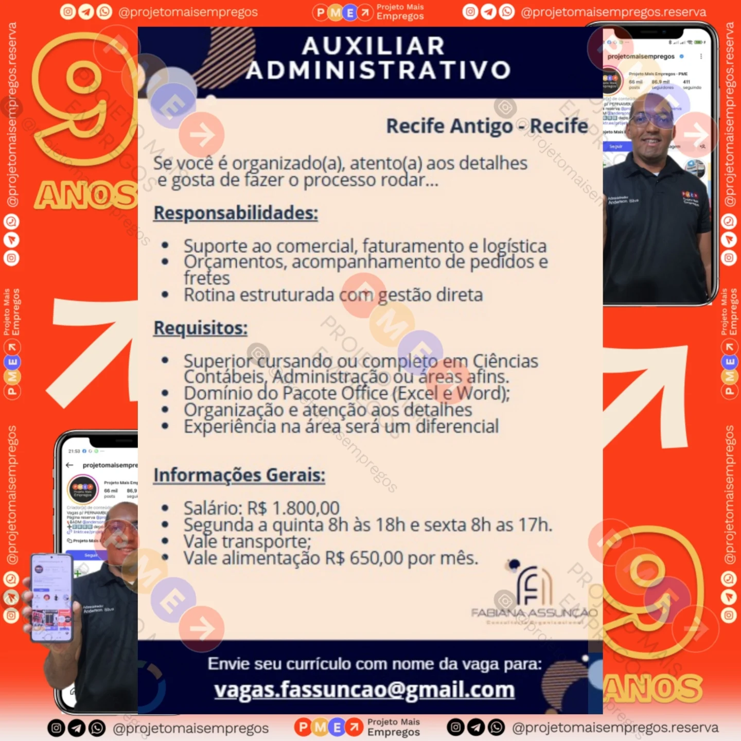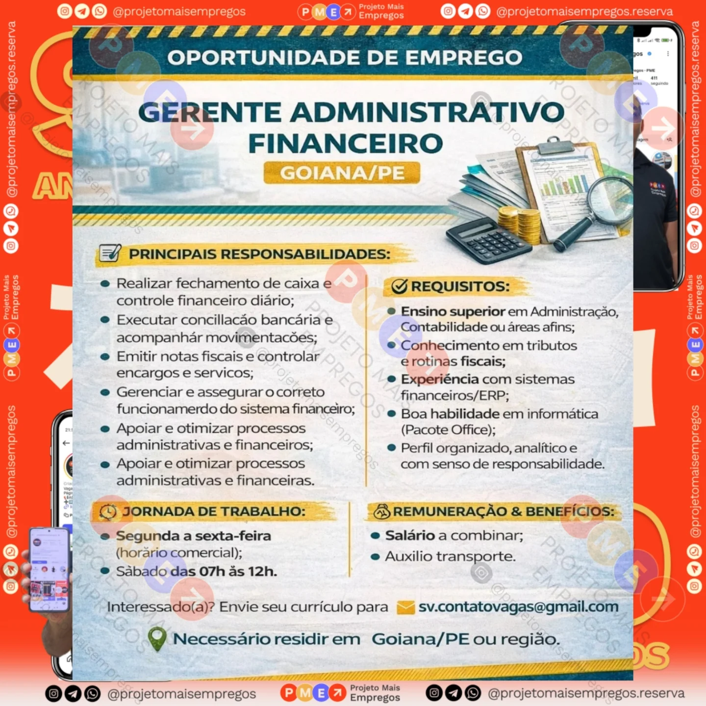 As informações sobre a vaga de emprego, como salário, remuneração, benefícios, requisitos, local de trabalho, forma de candidatura (e-mail ou whatsapp para enviar seu currículo) etc., estarão na imagem acima, caso estejam disponíveis.