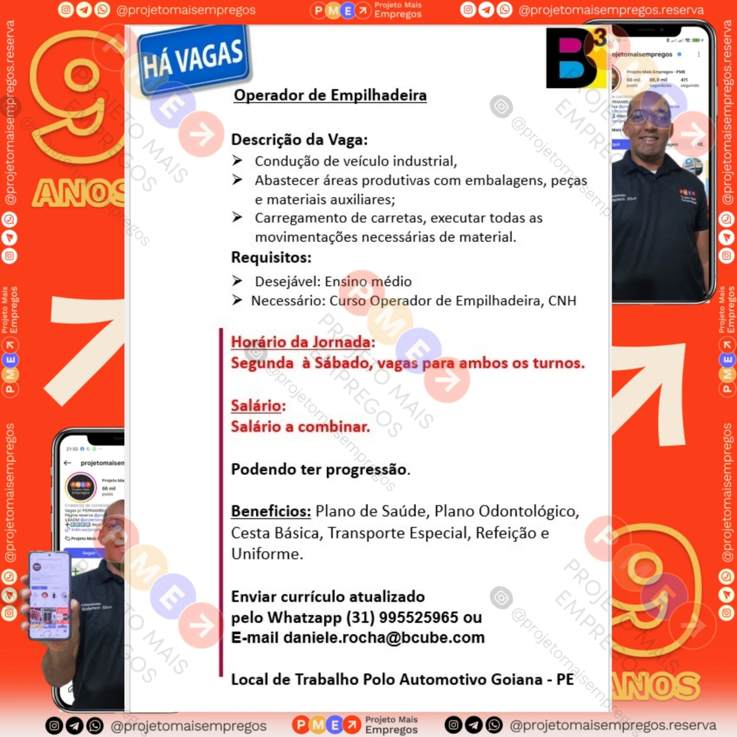 As informações sobre a vaga de emprego, como salário, remuneração, benefícios, requisitos, local de trabalho, forma de candidatura (e-mail ou whatsapp para enviar seu currículo) etc., estarão na imagem abaixo, caso estejam disponíveis.👇