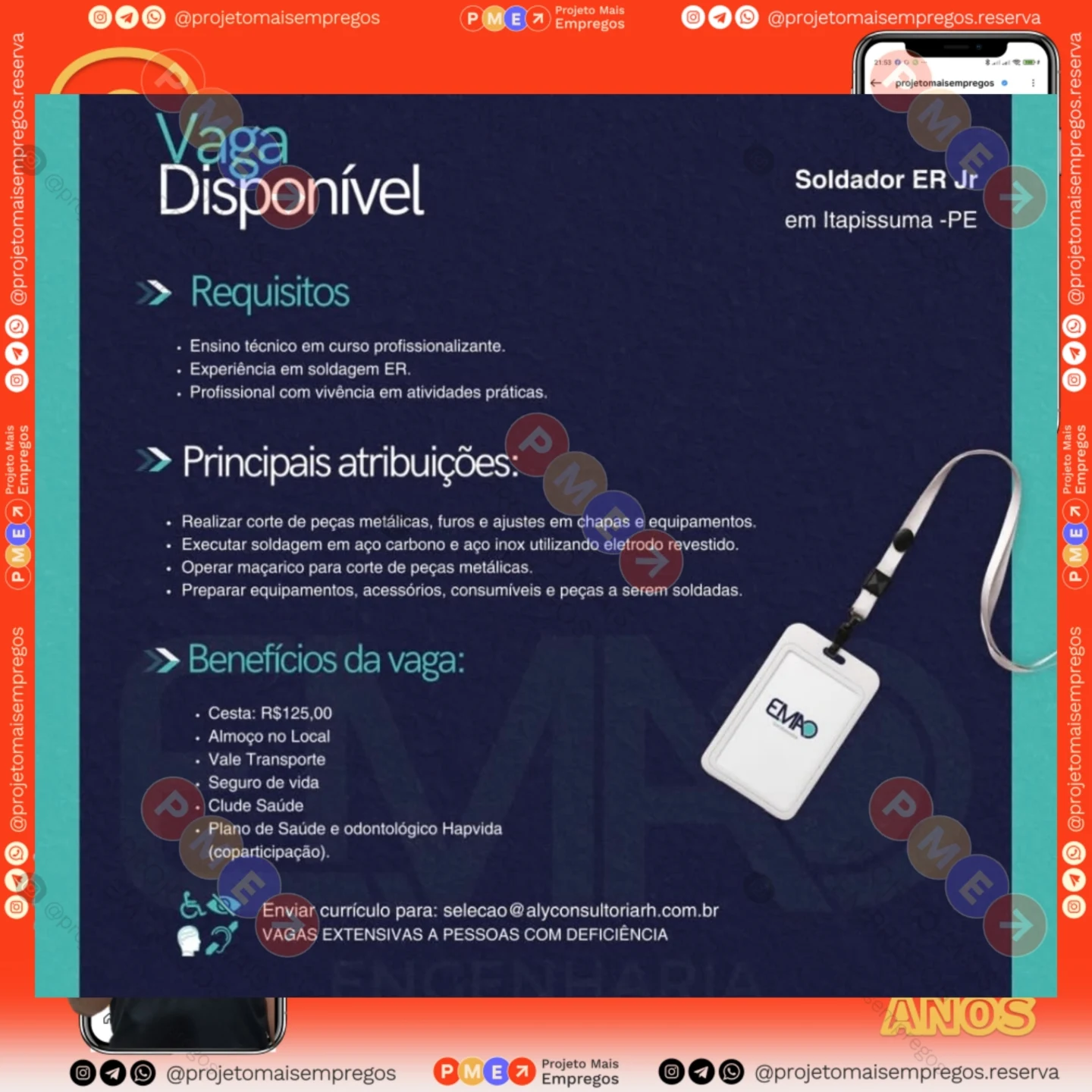 As informações sobre a vaga de emprego, como salário, remuneração, benefícios, requisitos, local de trabalho, forma de candidatura (e-mail ou whatsapp para enviar seu currículo) etc., estarão na imagem abaixo, caso estejam disponíveis.👇