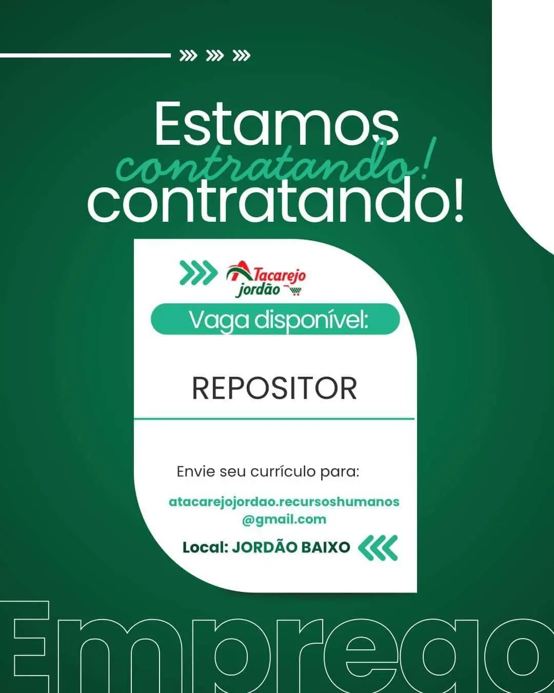 As informações sobre a vaga de emprego, como salário, remuneração, benefícios, requisitos, local de trabalho, forma de candidatura (e-mail ou whatsapp para enviar seu currículo) etc., estarão na imagem abaixo, caso estejam disponíveis.👇
