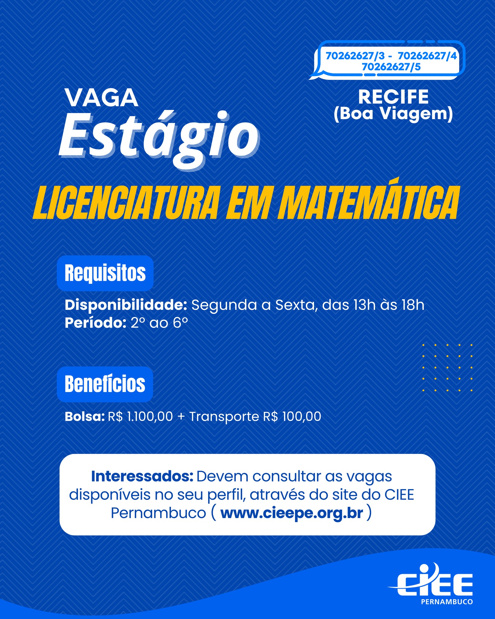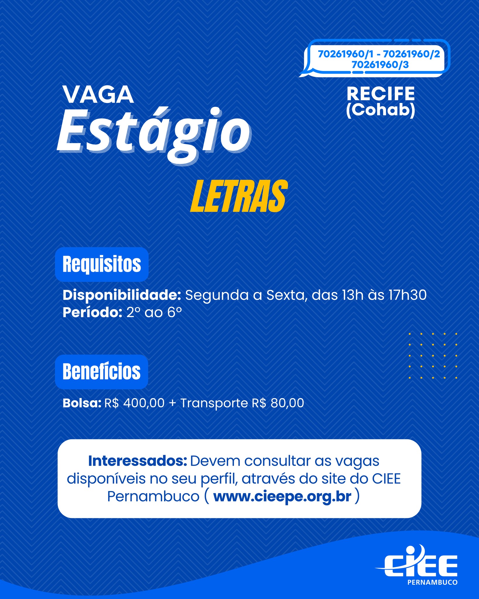 10 Vagas de emprego para Estagiário(a) em Pernambuco nesta sexta-feira (10/04)