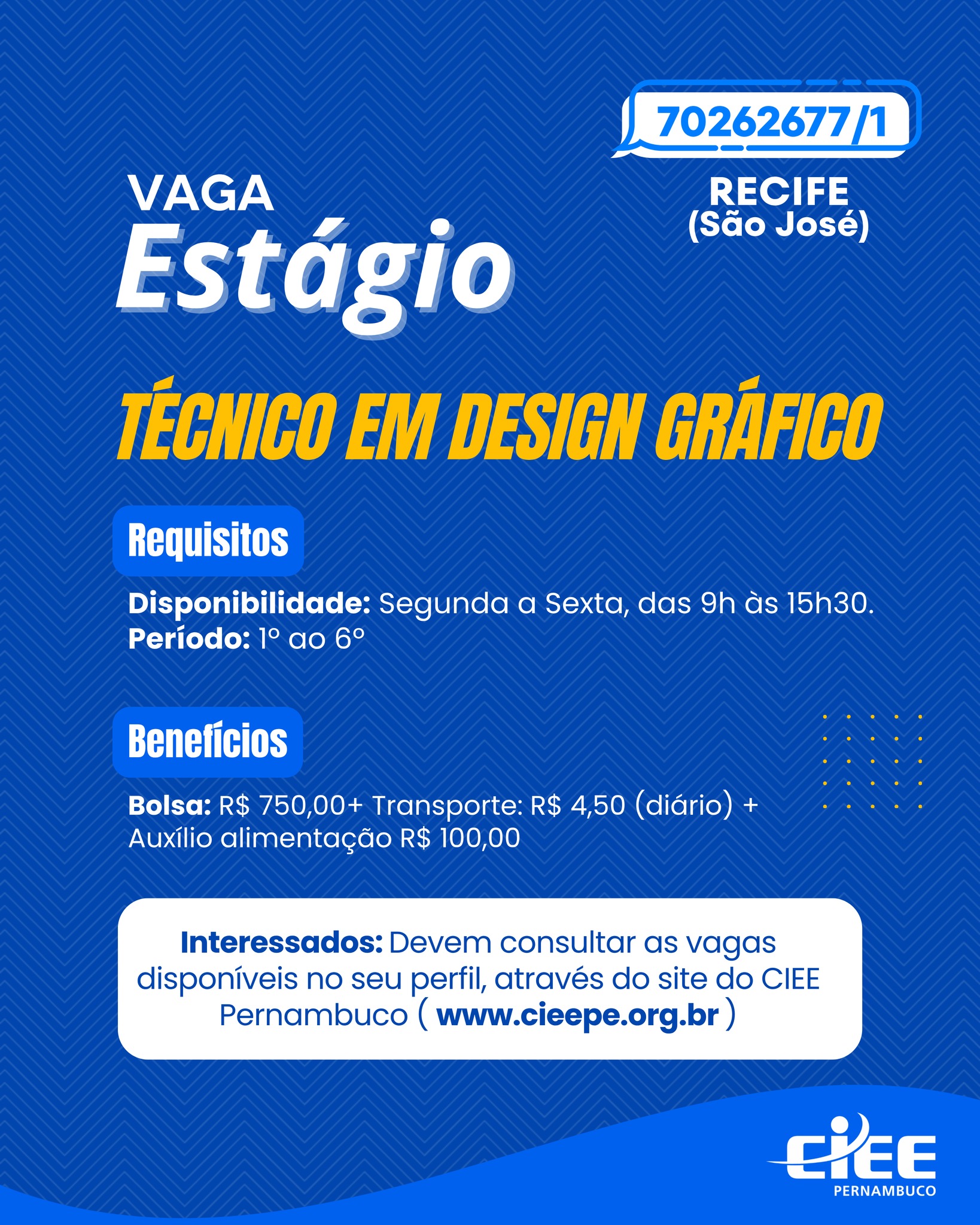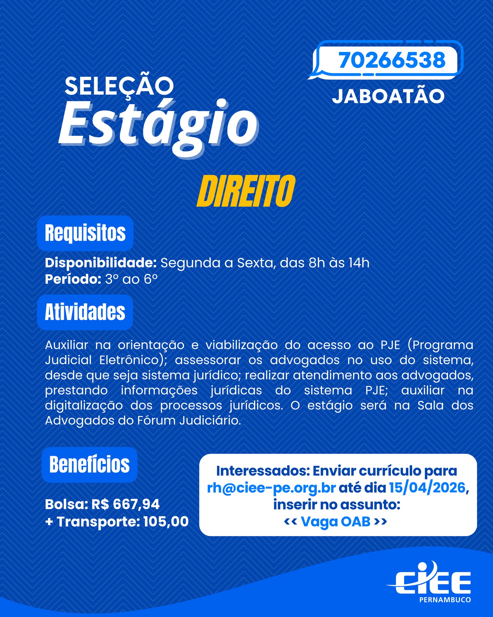 Quantidade de vagas: ESTAGIÁRIO(A): 10