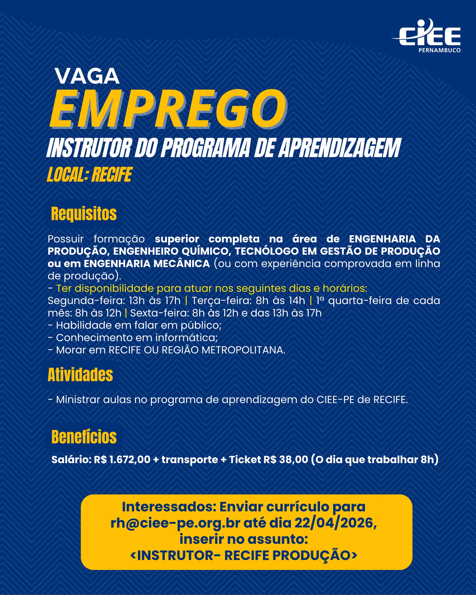 10 Vagas de emprego para Estagiário(a) em Pernambuco neste domingo (19/04)