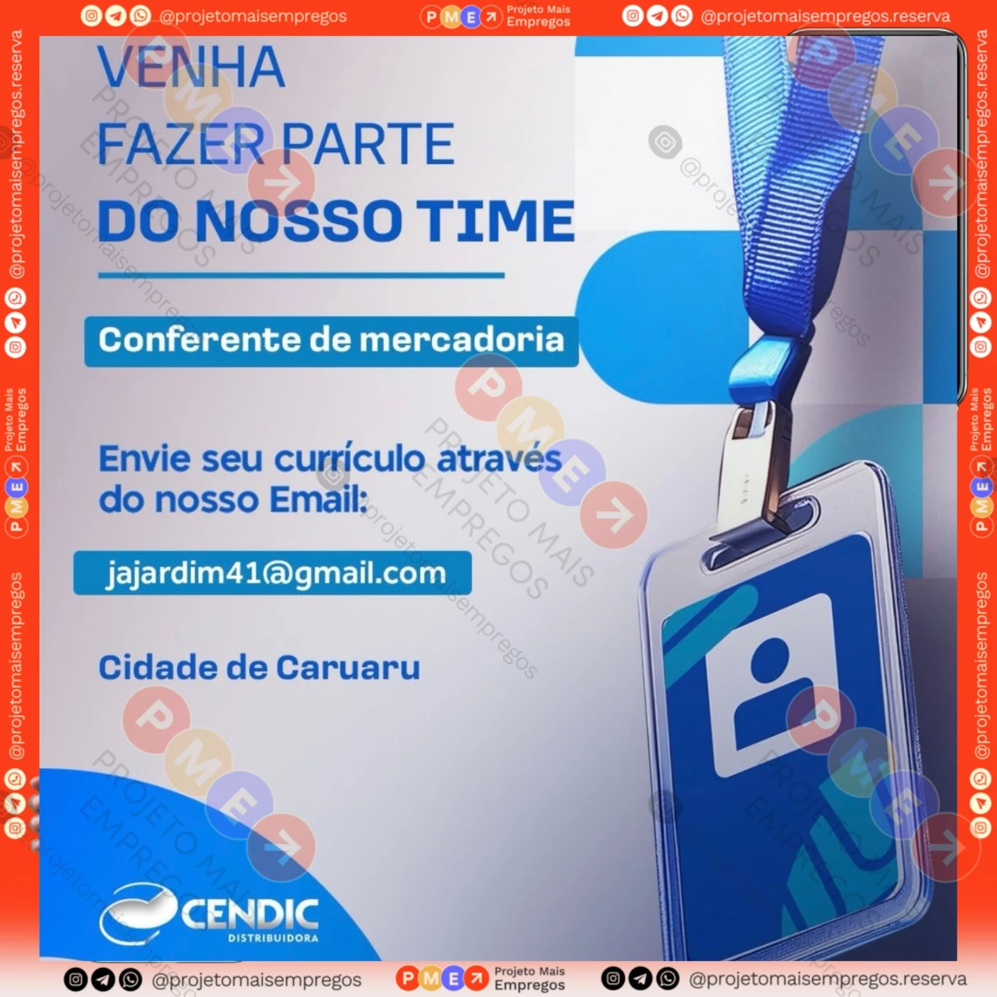 As informações sobre a vaga de emprego, como salário, remuneração, benefícios, requisitos, local de trabalho, forma de candidatura (e-mail ou whatsapp para enviar seu currículo) etc., estarão na imagem abaixo, caso estejam disponíveis.👇