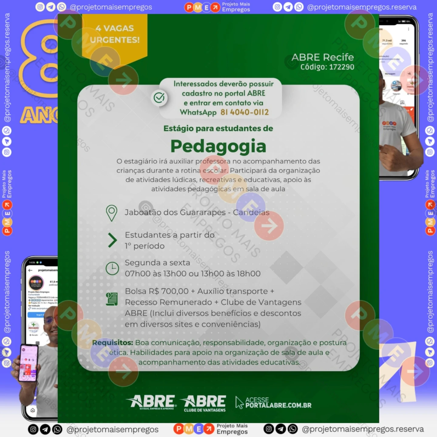As informações sobre a vaga de emprego, como salário, remuneração, benefícios, requisitos, local de trabalho, forma de candidatura (e-mail ou whatsapp para enviar seu currículo) etc., estarão na imagem acima, caso estejam disponíveis.