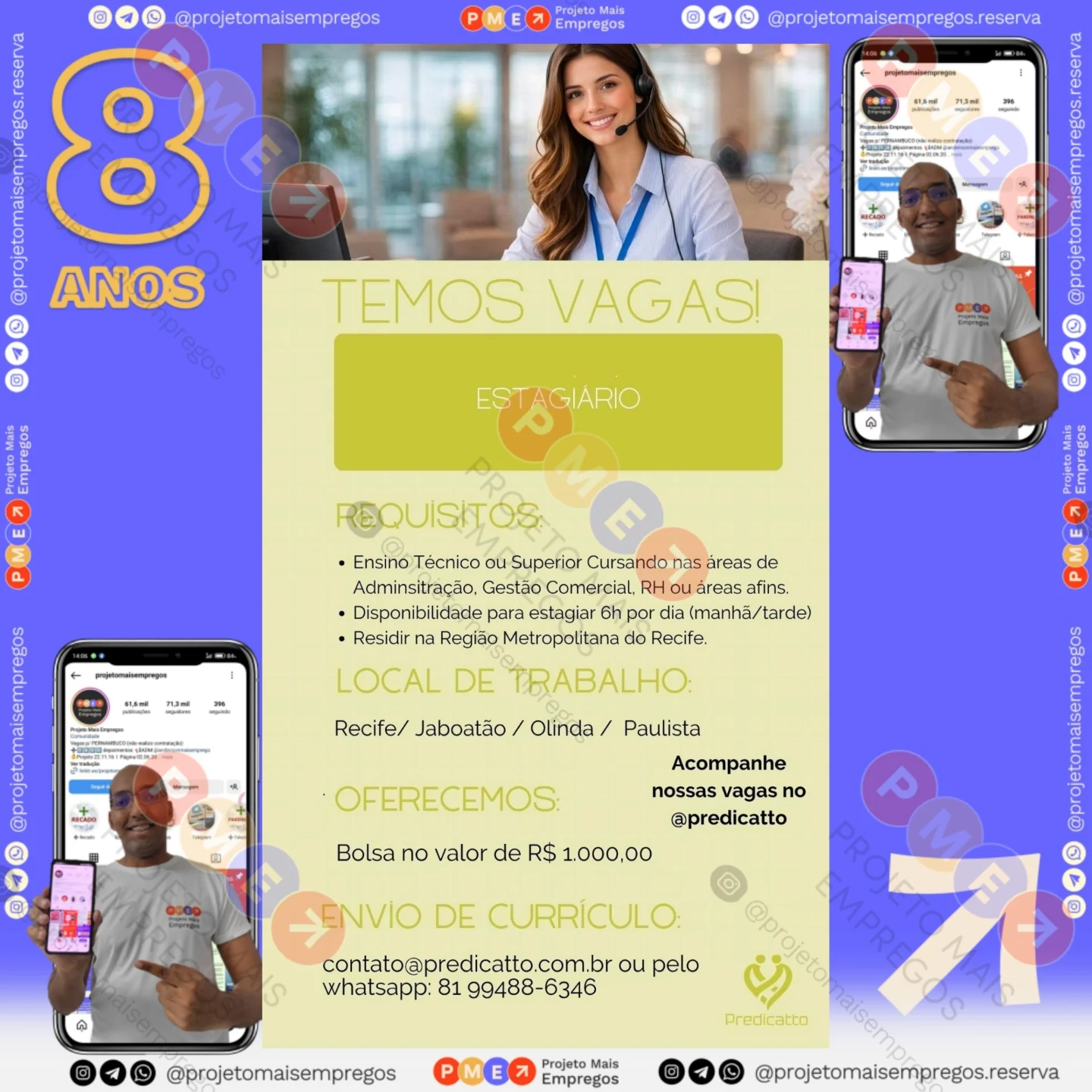 As informações sobre a vaga de emprego, como salário, remuneração, benefícios, requisitos, local de trabalho, forma de candidatura (e-mail ou whatsapp para enviar seu currículo) etc., estarão na imagem abaixo, caso estejam disponíveis.👇