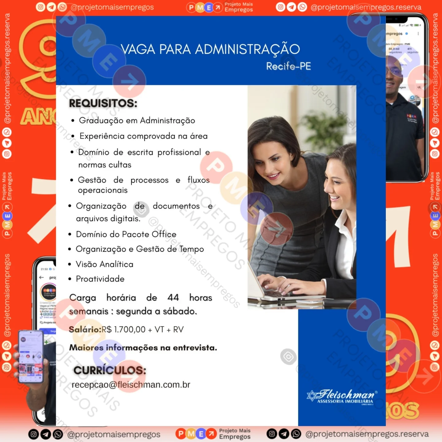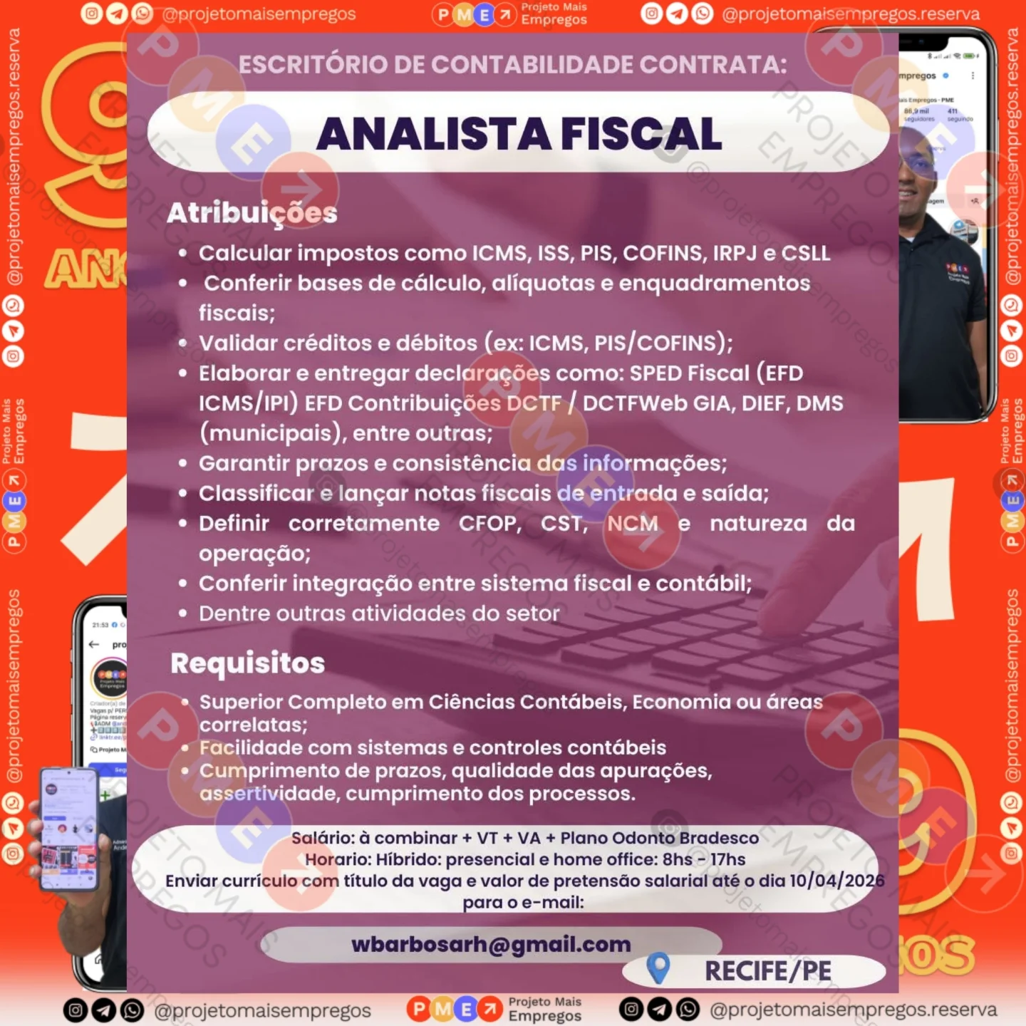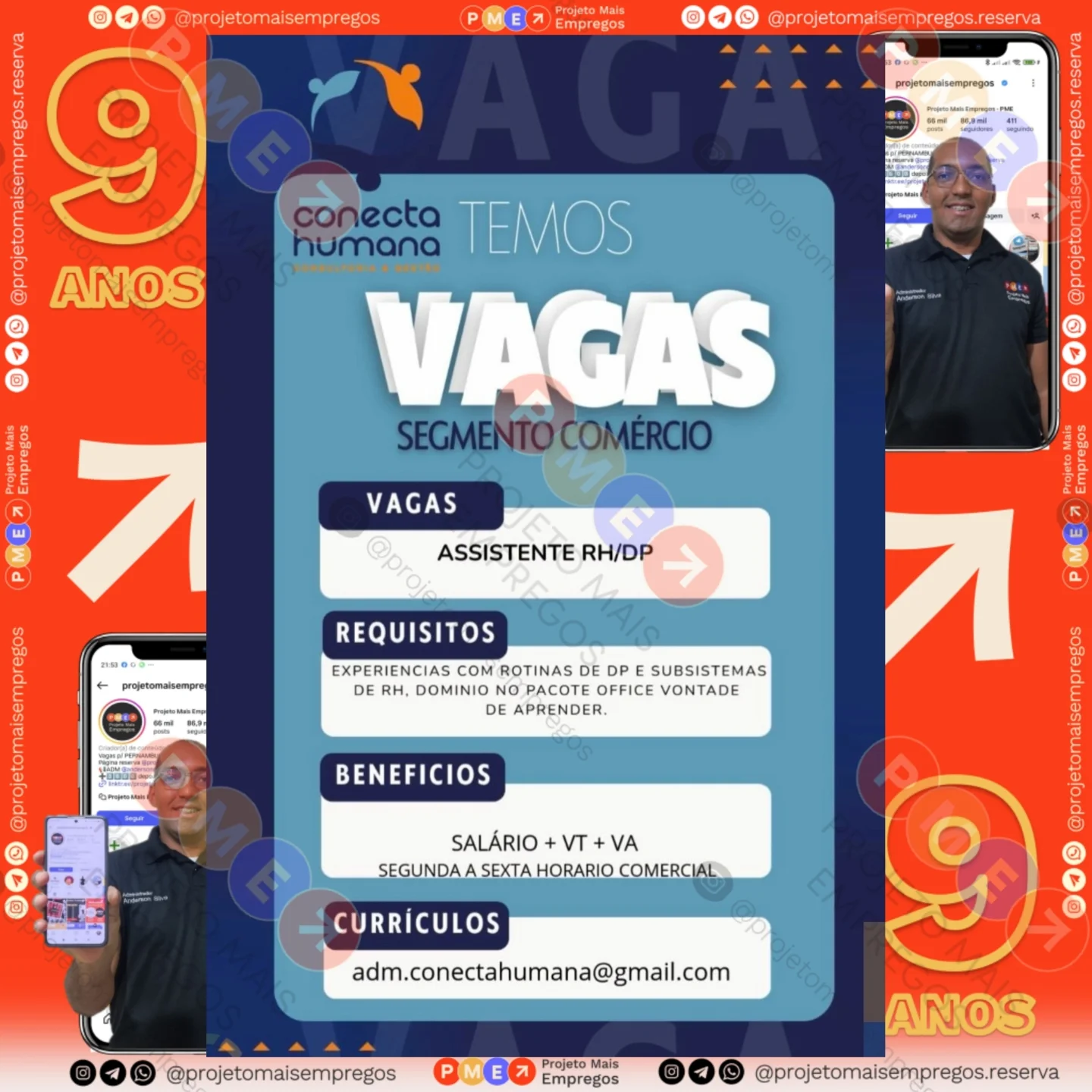 As informações sobre a vaga de emprego, como salário, remuneração, benefícios, requisitos, local de trabalho, forma de candidatura (e-mail ou whatsapp para enviar seu currículo) etc., estarão na imagem acima, caso estejam disponíveis.